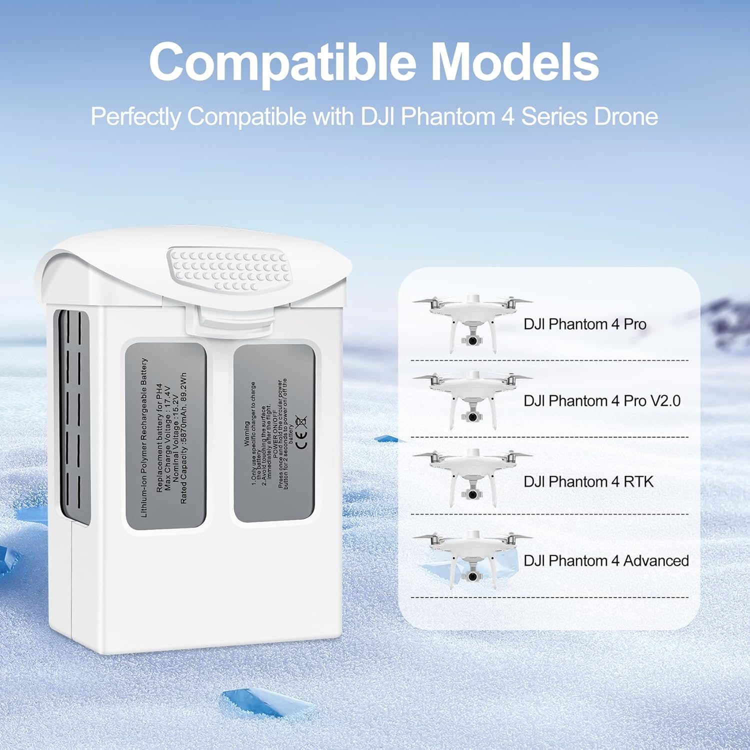 Elevata compatibilità: la batteria Phantom 4 è perfettamente compatibile con DJI Phantom 4, DJI Phantom 4 Pro, DJI Phantom 4 Pro Plus, DJI Phantom 4 Advanced, DJI Phantom 4 Pro V2.0, DJI Phantom 4 RTK e caricabatterie originale Phantom 4. E si collega perfettamente con l'app DJI GO 4, mostra lo stato della batteria in tempo reale. Batteria di volo intelligente ad alta capacità: batteria di ricambio Fantasyo Phantom 4 con una capacità di 5870 mAh e una tensione di 15,2 V. Supporta un massimo di 30 minuti di tempo di volo, a seconda di diversi fattori come velocità, tempo ventoso, temperatura, tempo di ricarica e così via. Nota: la batteria del Phantom 4 Pro è precaricata al 30%, si prega di caricare completamente prima del primo utilizzo e fare più volte la prova. Si prega di raffreddarlo a sufficienza prima di ricaricarlo nuovamente e caricarlo meglio con il caricabatterie OEM per evitare problemi. Connessione APP: questa batteria per droni può essere collegata all'app per droni, che può visualizzare lo stato della batteria, compreso il tempo di utilizzo, il tempo rimanente e altre informazioni. Quando la carica della batteria è inferiore al 30%, è possibile impostare un allarme per ricordare agli utenti di sostituire la batteria in tempo. Contenuto della confezione: 2 batterie di ricambio per DJI Phantom 4. Offriamo un servizio clienti 24 ore su 24, e una politica di restituzione gratuita di 30 giorni.