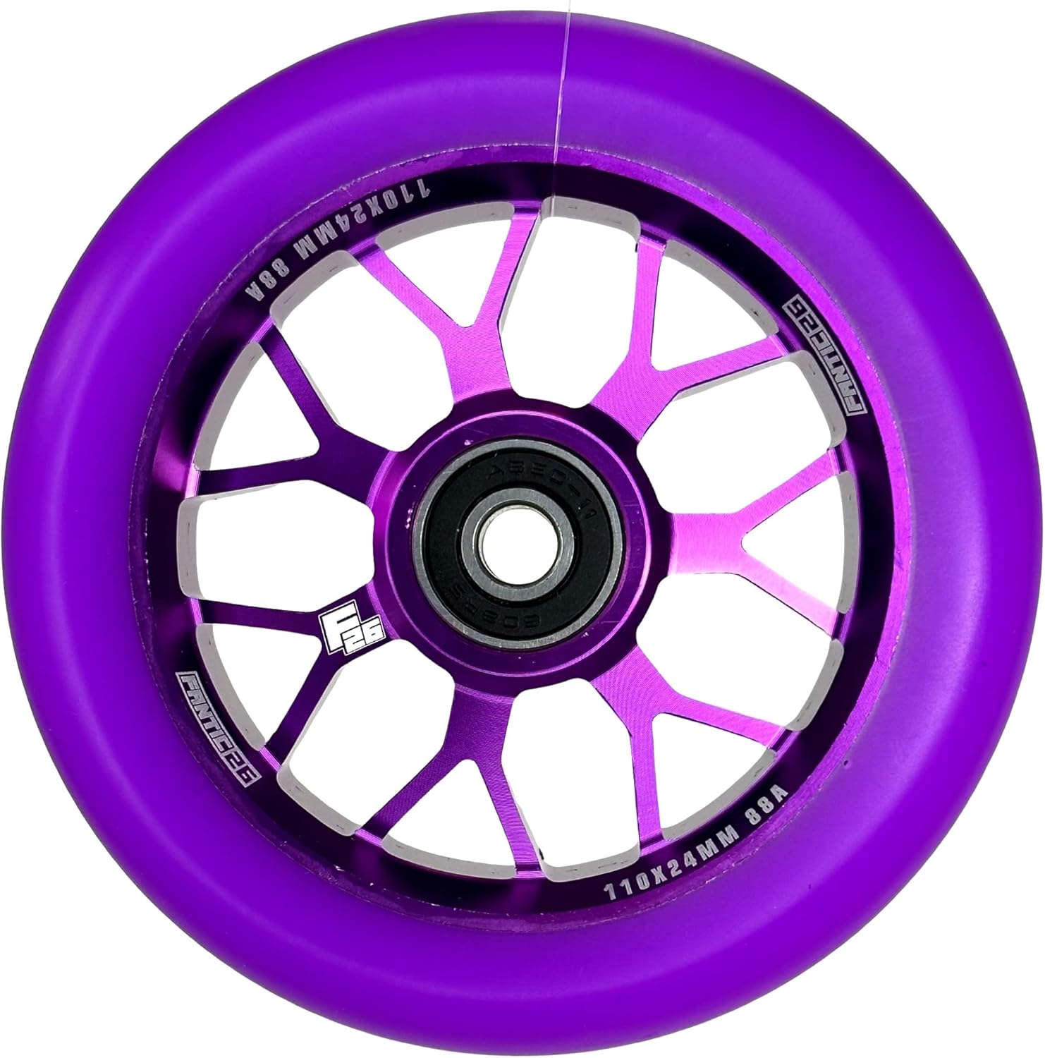 Il nuovo monopattino Fanitc26 Spy7 è il prodotto di un processo di produzione ottimizzato a lungo È realizzata in lega di alluminio 6061 particolarmente stabile ma leggera ed è stata indurita mediante il processo di trattamento termico T6 Il nucleo del rullo per monopattino è finemente anodizzato, fresato CNC e inciso a laser Il rotolo misura 110 mm x 24 mm e pesa 235 g. Il cuscinetto a sfera utilizzato ha una precisione di cuscinetti a sfera ABEC-11 e un diametro dell'asse di 8 mm. Il PU del rullo ha una durezza di 88A. Alta qualità e rimbalzo per trucchi. Liscio e silenzioso. È abbastanza resistente per un uso prolungato. Prezzo per un rotolo! Prezzo per una ruota!