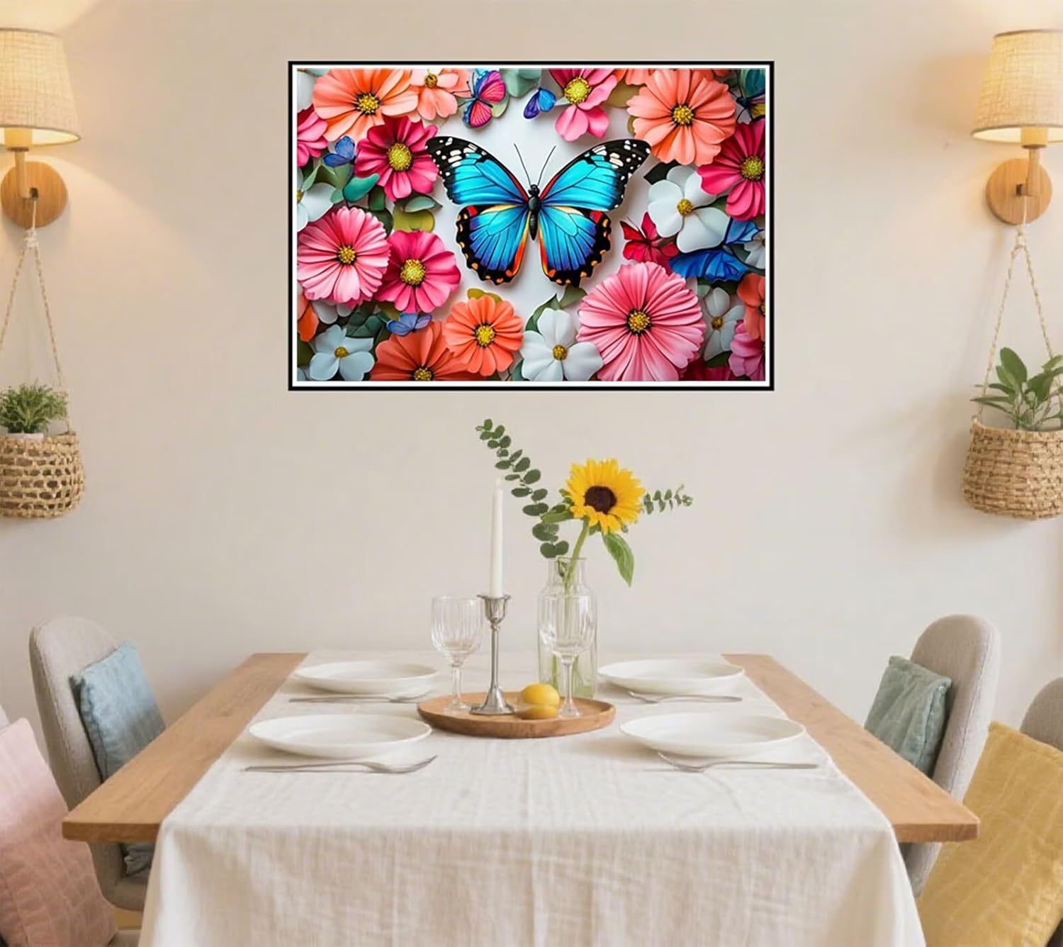 Farfalla Diamond Painting Fiore Diamond Painting Kit Completo,5D Pittura Diamante Pittura Bambini, Puzzle con Perline Passatempo per Adulti, Diamantini Crystal Art, Decorazione Casa 100x150cm Q-453