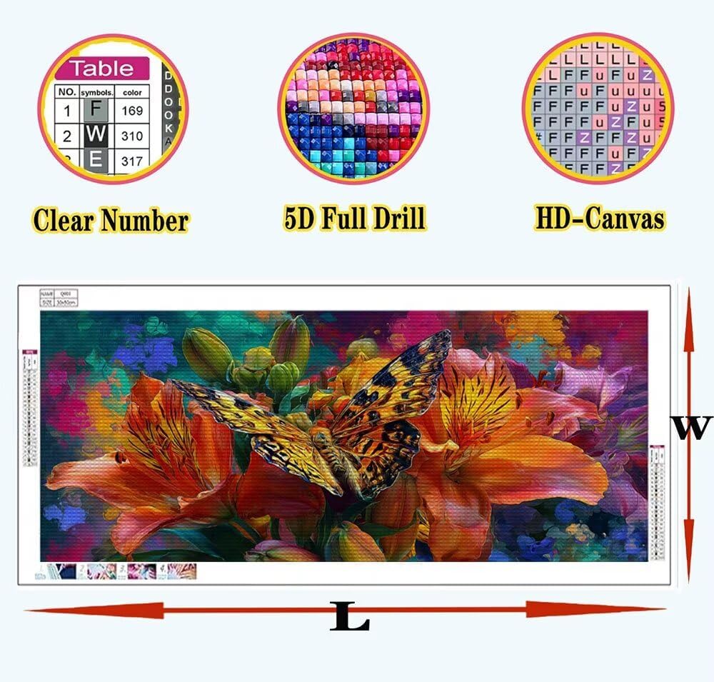 Farfalla Diamond Painting Kit Completo, Fiore Diamond Painting Bambina 40x80cm DIY Full Drill Crystal Art , 5D Bambini Per Pittura Diamante Adulti Principianti Per Pittura Diamante Wall Decor A-U18