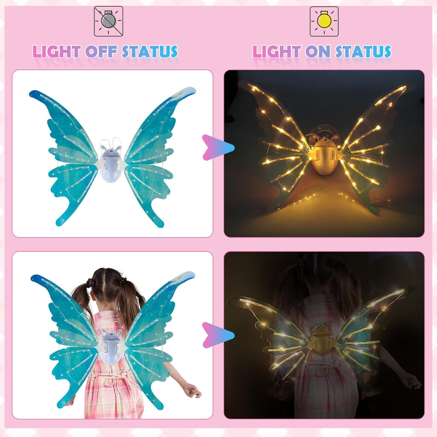 L a farfalla vanta unico con cintura regolabile e struttura leggera, garantendo vestibilità comoda. Balla ritmo della tua musica con l farfalla elettrica, dai tuoi sogni. Immergiti in mondo incantesimi con l farfalla elettrica, dotata luci a LED che effetto affascinante mentre muovi. L elettrica è adatta per feste compleanno, eventi cosplay, feste Halloween e festività natalizie. Perfette per appassionati farfalle, queste sono progettate per deliziare le ragazze che le donne che amano aggiungere tocco fantasia loro abbigliamento.