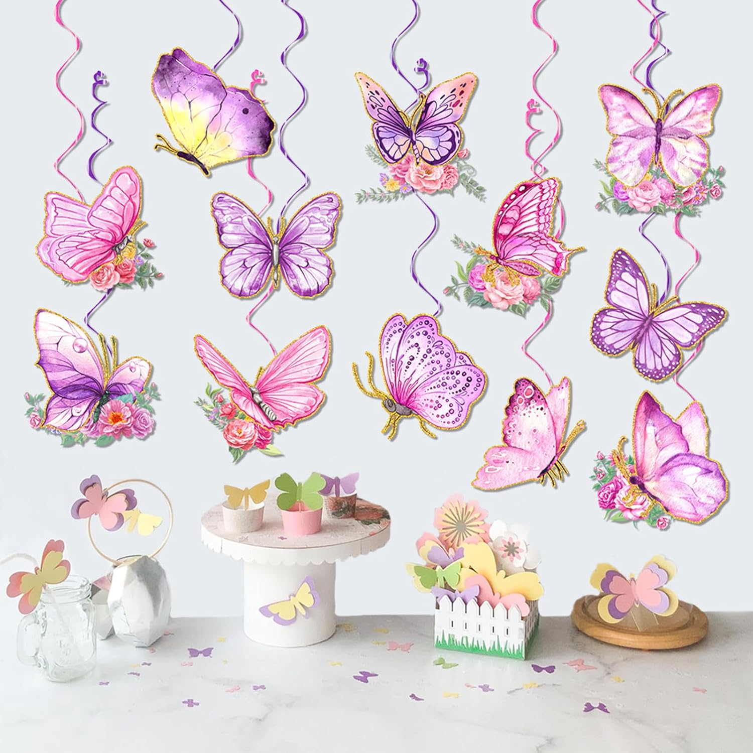 Trasforma qualsiasi spazio con le nostre decorazioni a forma di farfalla, progettate per aggiungere vitalità alla tua celebrazione. per casalinghe, organizzatori di feste, insegnanti e chiunque sia appassionato di decorare il proprio spazio con tocchi unici. Dispone di 12 ritagli di carta e 12 spirali singole, queste decorazioni sono e creano un'atmosfera stravagante Adatto per feste di compleanno, matrimoni, decorazioni per la stanza dei bambini e celebrazioni di festival, questi vortici da appendere portano un tocco unico a qualsiasi evento. Migliora la decorazione della tua festa con questi ornamenti a tema farfalla, garantendo che la raccolta sia memorabile.