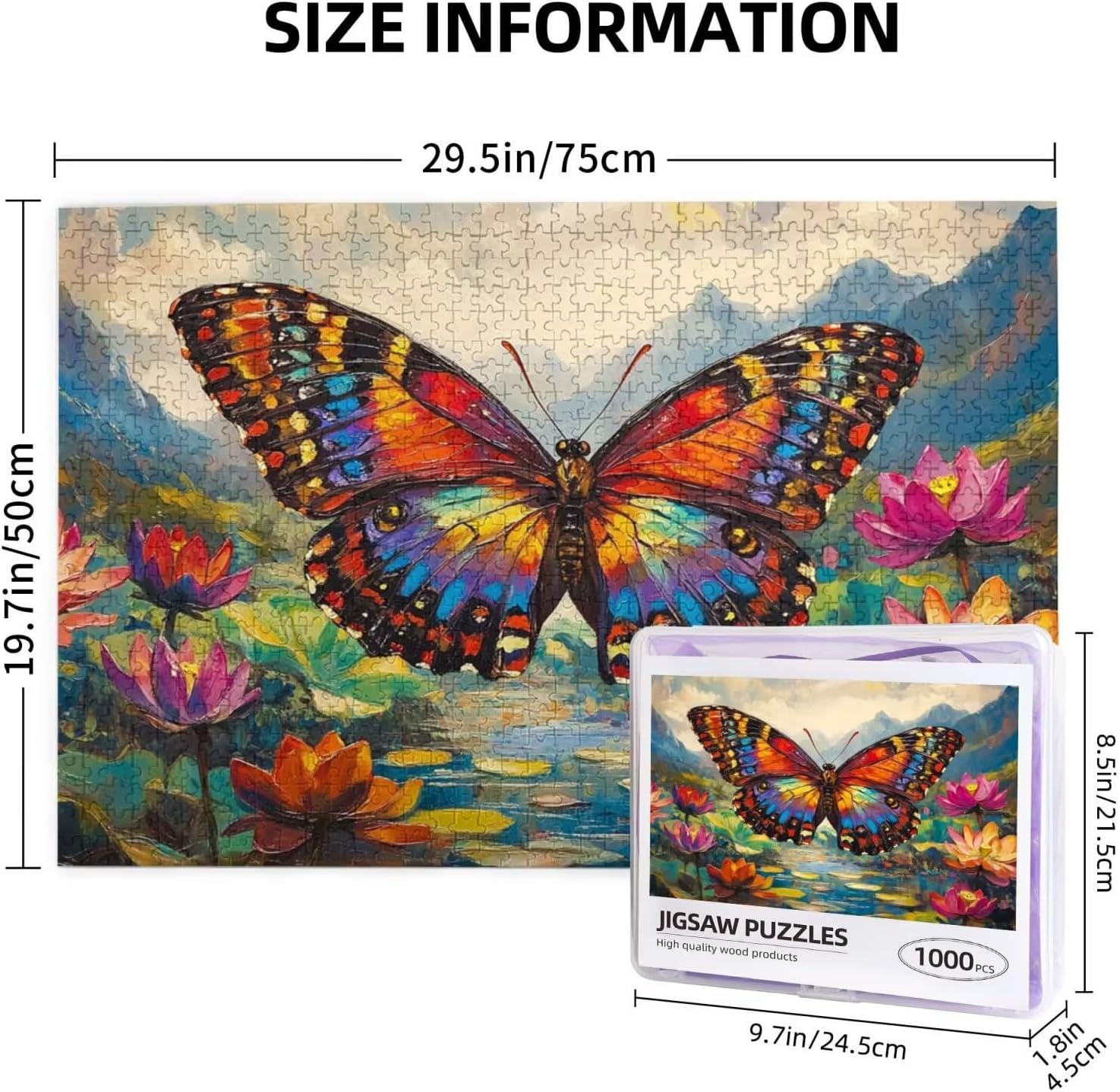 Farfalla Puzzle 2000 Pieces Colore Puzzle Adulte Principiantecon Scatola Regalo, DIY Puzzleinterattivo di Familiare Impegnativo Gioco, Stress Relief Home Wall Room Decor Art Regalo Uomo 70x100cm-z993