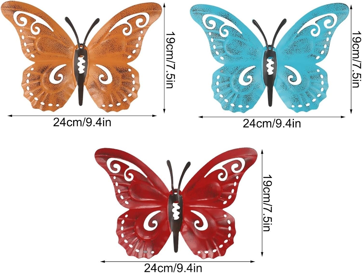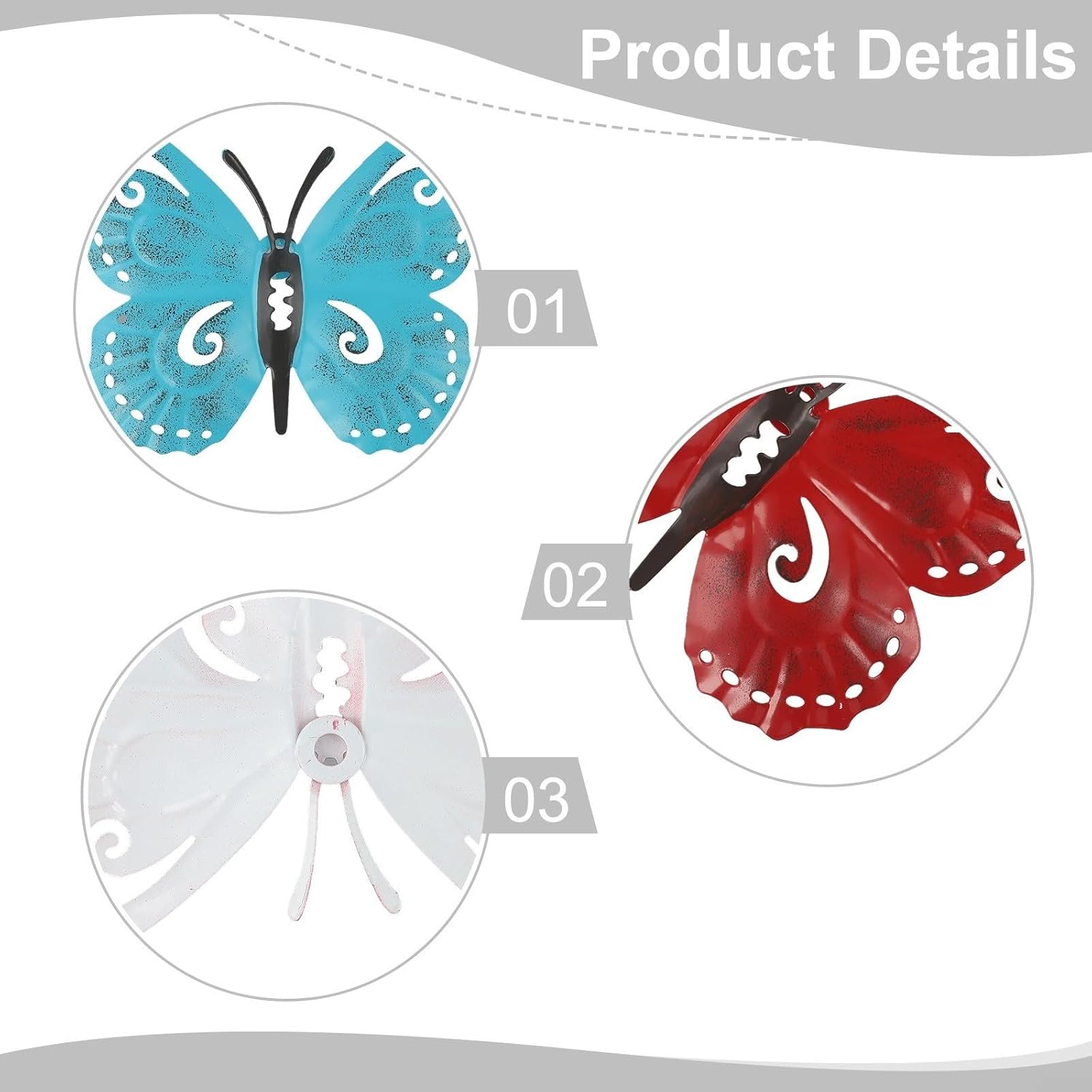 Design a tre dimensioni: la curvatura unica di ogni farfalla crea un effetto visivo accattivante che eleva il tuo spazio abitativo tradizionale arte da parete. Struttura in ferro: realizzate in ferro robusto e rifinite con colori vivaci, queste farfalle sono progettate per resistere agli elementi esterni mantenendo la loro bellezza. [Bellezza naturale] all'aria aperta, queste farfalle infondono alla tua casa un senso di vita e freschezza che illumina qualsiasi stanza. Perfetto per gli appassionati di decorazione: questo set decorativo è una scelta eccellente per coloro che apprezzano l'arredamento a tema naturale ed è perfetto per occasioni speciali o celebrazioni.