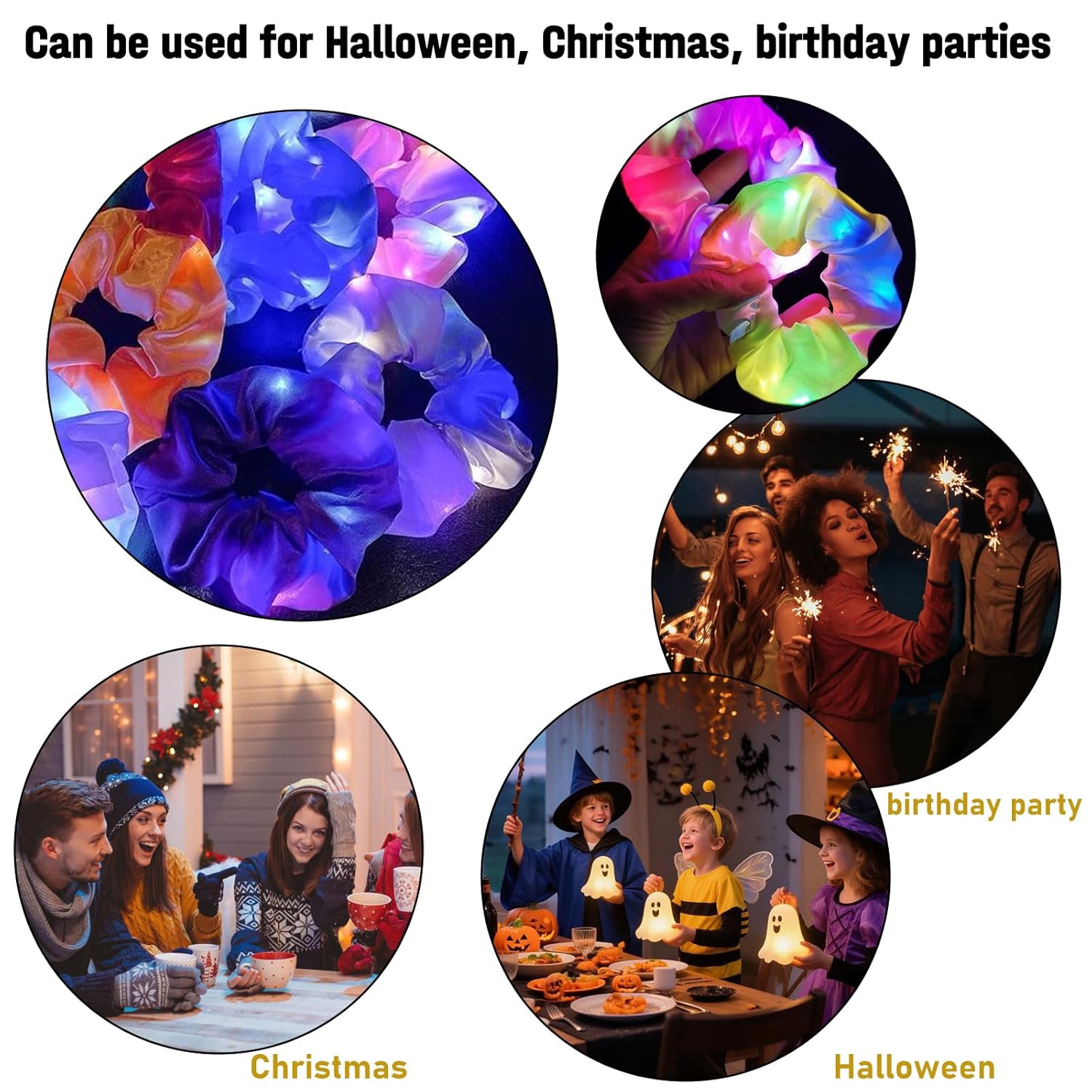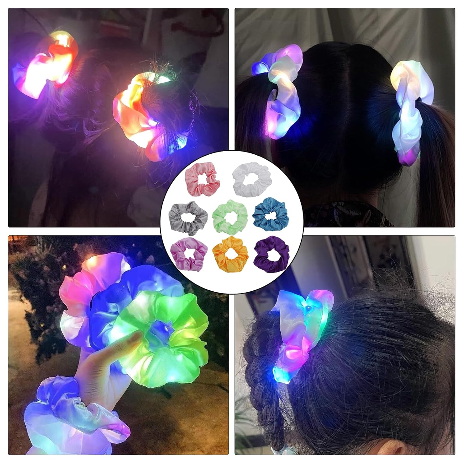 Eleganti elastici a LED con effetto luminoso al buio, perfetti per accessori per capelli da festival o per ragazze che dormono. Gli elastici luminosi donano ad ogni look una magica luminosità. Elastici di alta qualità realizzati in materiale morbido, ideali come borsa da festa per ragazze adolescenti. Le colorate ciocche di capelli per bambini ti rendono il momento clou di ogni pigiama party. Elegante fascia per capelli luminosa per occasioni speciali come festival o feste. Prima dell'uso, trova l'interruttore a levetta all'interno della fascia per capelli, estrailo e premi il pulsante per accendere la luce. Pratici elastici per capelli con tecnologia LED che si illuminano al buio. Perfetto per le ragazze con fascia per capelli e come borsa da festa per ragazze 5 6 7 8 9 10 anni. Anelli luminosi ed elastici per capelli versatili, ideali per bambini e adolescenti. Un must per qualsiasi festa notturna o come accessorio per un festival.