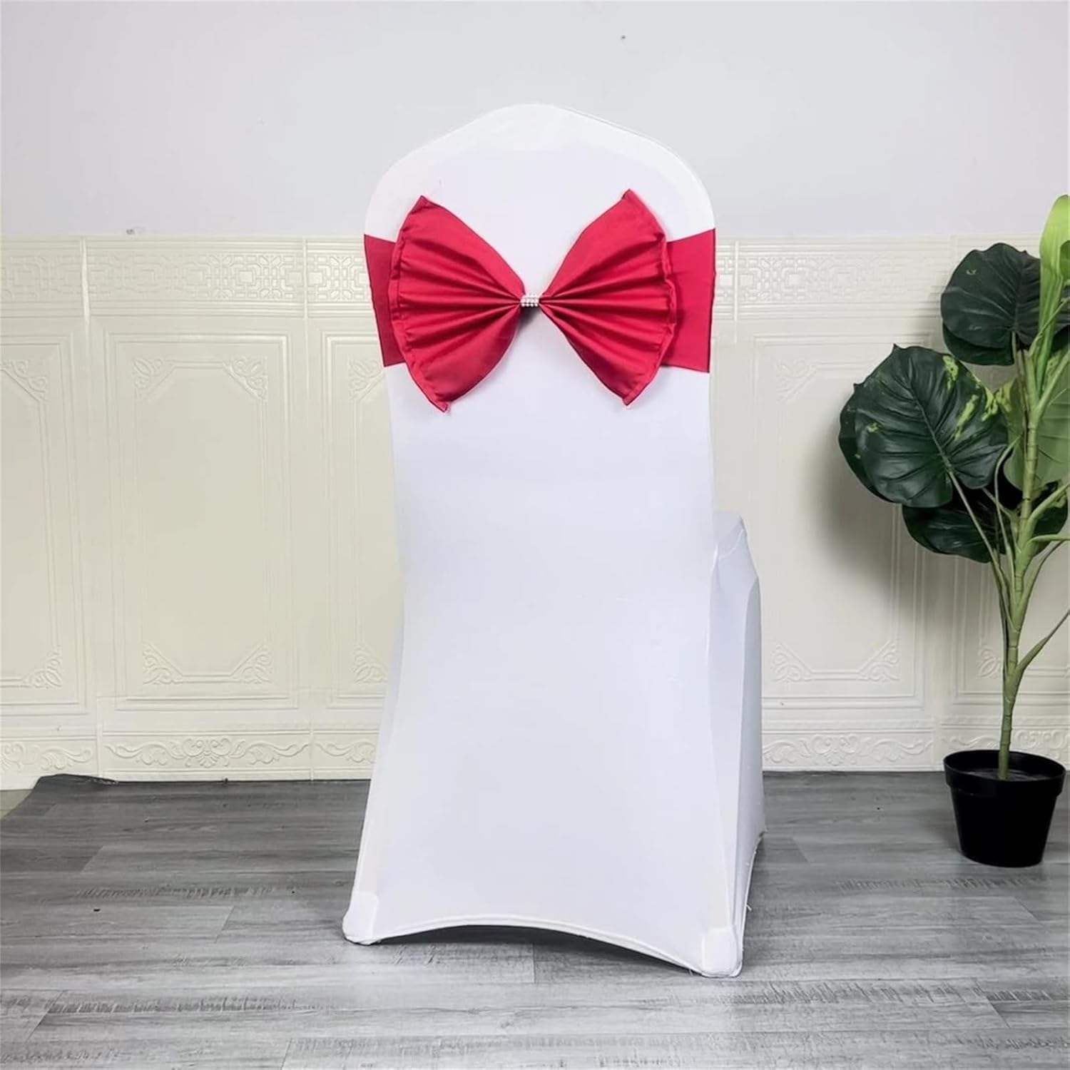 Elevare senza sforzo la decorazione del tuo matrimonio con i nostri fiocchi per sedia estensibili, migliora l'attrattiva complessiva Trasforma le normali sedie in eleganti punti focali con questi versatili per sedie Realizzata in fibra poliestere, la fascia della sedia è durevole, resistente sbiadimento e presenta un colore sofisticato che adatta alle varie dimensioni della sedia Per wedding planner, sposi e organizzatori eventi che valorizzano la decorazione dei banchetti Perfettamente per matrimoni, banchetti, feste e altre occasioni celebrative, aggiungendo un tocco romanticismo a qualsiasi disposizione dei posti a sedere
