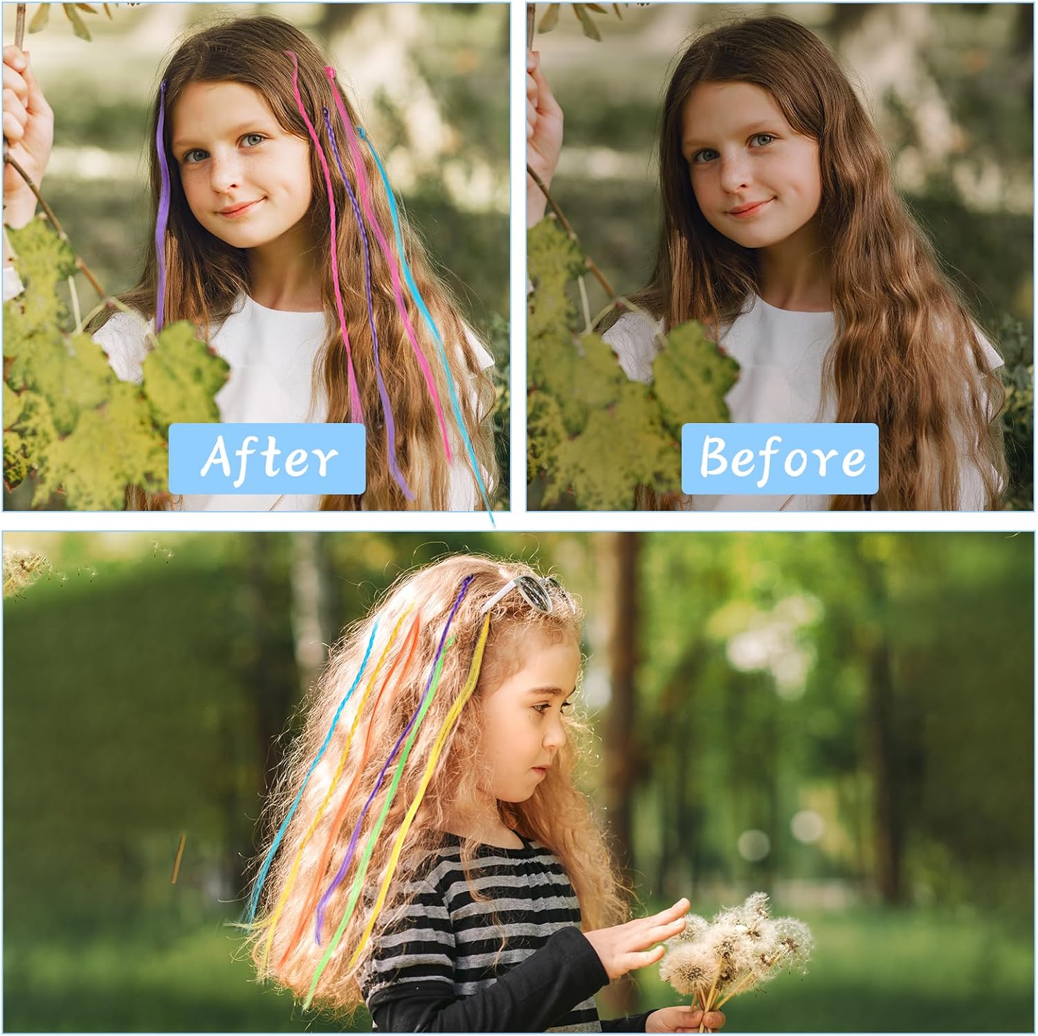 Set versatile da 24 pezzi: include 24 pezzi di capelli colorati per bambini con clip dai colori vivaci, perfetti da mescolare e abbinare per acconciature personalizzate. DESIGN ADATTO AI BAMBINI: ciocche colorate a clip da 30 cm realizzate in morbida fibra sintetica sono appositamente progettate per la testa dei bambini senza tirare o scivolare. Facile da usare: comode clip in plastica possono essere agganciate ai capelli sintetici per bambini impazienti e genitori stressati. Materiali di alta qualità: fibre sintetiche ipoallergeniche inodore e clip infrangibili per un comfort sicuro per ore. Regalo perfetto: in una presentazione colorata, extension per capelli per bambini, per compleanni, feste per bambini o come sorpresa per i piccoli appassionati di moda.