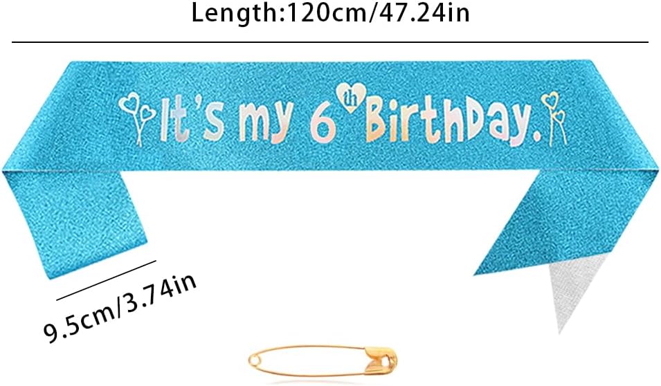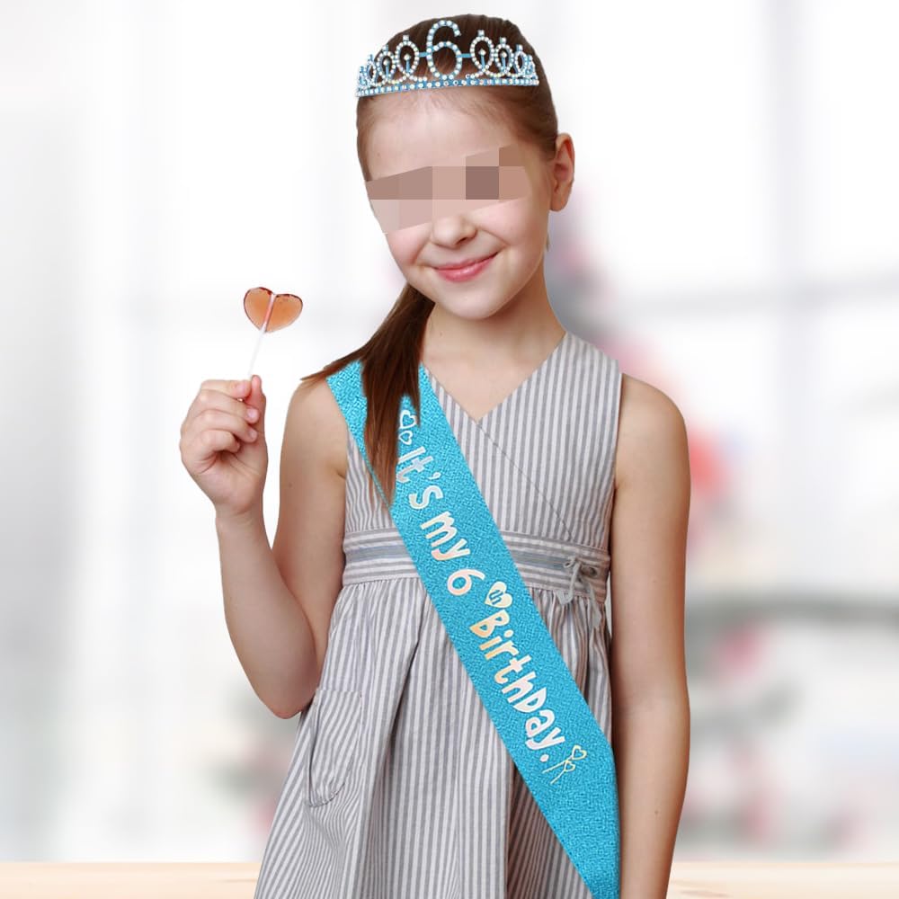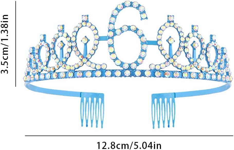 Specifiche tecniche: Materiale: lega, strass, tessuto. Colore: blu. Dimensioni: come da immagine. Quantità: 1 corona con strass. 1 fascia con scritta "It's my 6th birthday". 1 puntina. Questa corona di compleanno blu decorata con strass lucidi, adatta per la maggior parte delle donne e delle ragazze, aggiunge un senso di eleganza e fascino femminile, può farti brillare e accattivante tra la folla delle feste. Corona con pettini, due pettini situati su entrambe le estremità della corona possono afferrare i capelli più saldamente La fascia di compleanno è di colore blu, stampata con parole per festeggiare il compleanno della ragazza, decorazione elegante e splendida, si adatta perfettamente all'atmosfera calda e dolce della festa di compleanno