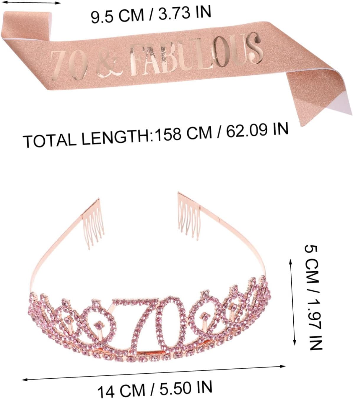 Tiara di strass: questo pacchetto include una tiara di compleanno e un nastro, adatti per il tuo importante e una decorazione per lasciarti un bel , compleanno Donne per il 70° compleanno: realizzate in materiale resistente, non facili da rompere o deformare, adatte per decorazioni per compleanni. Fascia per compleanno da donna: squisitamente affascinante, con un tocco aristocratico, che ti fa apparire più glamour, e attraente, decorazioni per feste. Decorazione di compleanno per donne: design meraviglioso, forma meravigliosa con decorazioni glitterate, una tiara di cristallo perfetta per donne e ragazze, ornamento per feste. Decorazioni per il compleanno: questo grazioso set è decorato con strass di diamanti artificiali, fascia per il compleanno