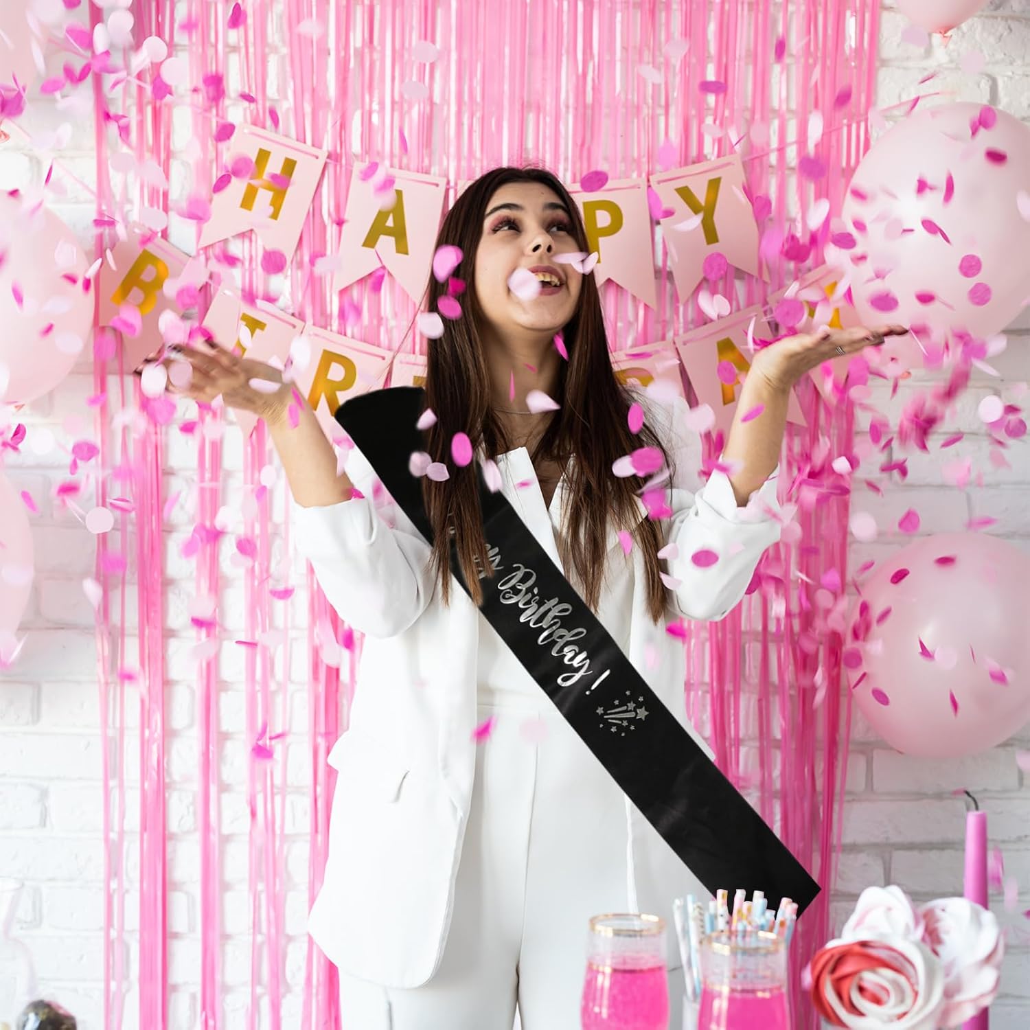 Fascia di compleanno da donna: festeggia con stile con la nostra fascia di compleanno in oro nero, realizzata in morbido raso, questa fascia resistente e accattivante offre un tocco delicato, garantendo comfort e per ogni momento speciale Fascia personalizzata: le nostre scintillanti cinture di compleanno sono perfette per celebrazioni importanti e servizi fotografici, assicurandoti di distinguerti a feste a sorpresa e altre occasioni Adatta per ogni celebrazione: la nostra versatile fascia di compleanno in oro nero misura 160 cm e include una comoda spilla per una vestibilità perfetta, progettata per tutto il corpo, questo elegante accessorio offre comfort e libertà tutto il giorno per qualsiasi festa di compleanno Versatile accessorio essenziale: perfetto per qualsiasi occasione di compleanno, la nostra fascia in oro nero completa vari temi e decorazioni, ideale per o qualsiasi compleanno pietra miliare, funge anche da accessorio fotografico chic per catturare momenti indimenticabili Regalo premuroso: delizia i tuoi cari con la nostra fascia di compleanno nera e oro, questo accessorio chic illuminerà qualsiasi look di compleanno ed è un ottimo regalo per familiari e amici che celebrano un giorno speciale, aggiungendo ricordi senza tempo alla loro celebrazione