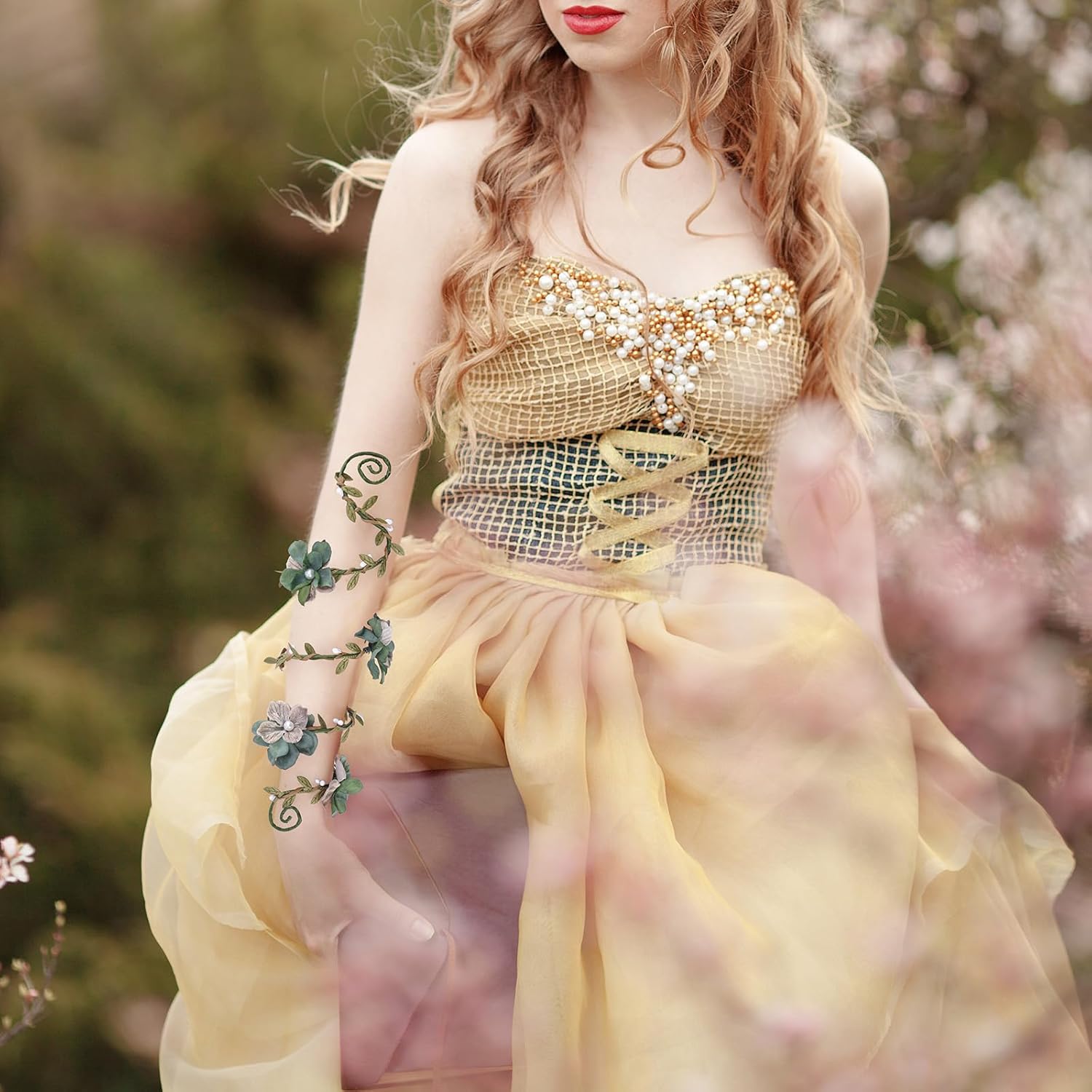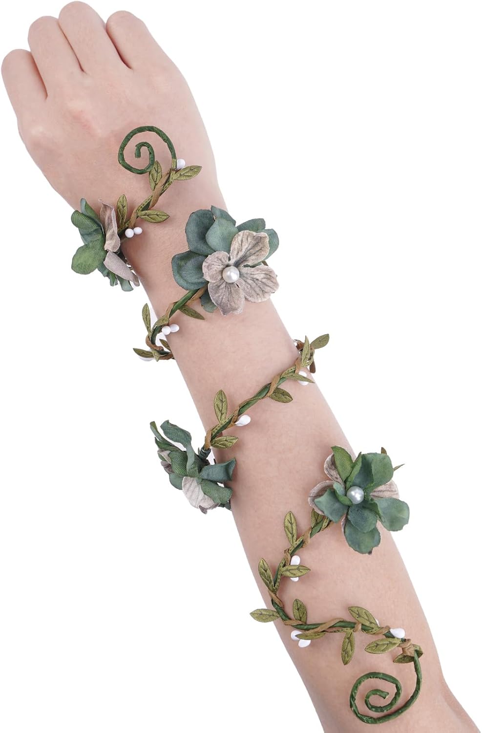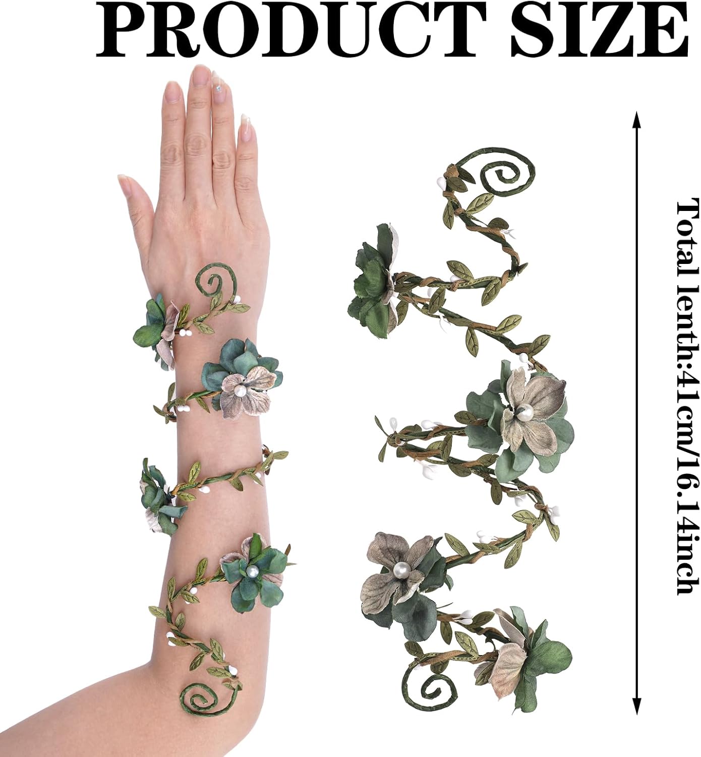 Questo accessorio da braccio presenta elementi floreali verdi strutturati avvolti attorno a una base simile a una vite. Il suo tono scuro offre un contrasto visivo a terra per abiti pastello o dai colori vivaci. La sua forma è compatta, consentendo a chi lo indossa di incorporarlo nei movimenti. Il design regolabile consente la riutilizzabilità in diversi eventi e temi di stile.
