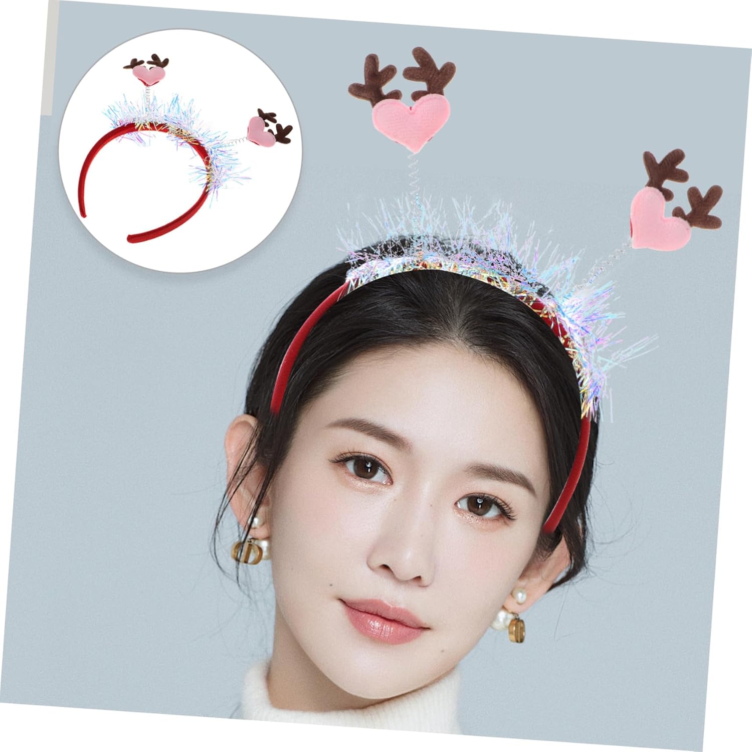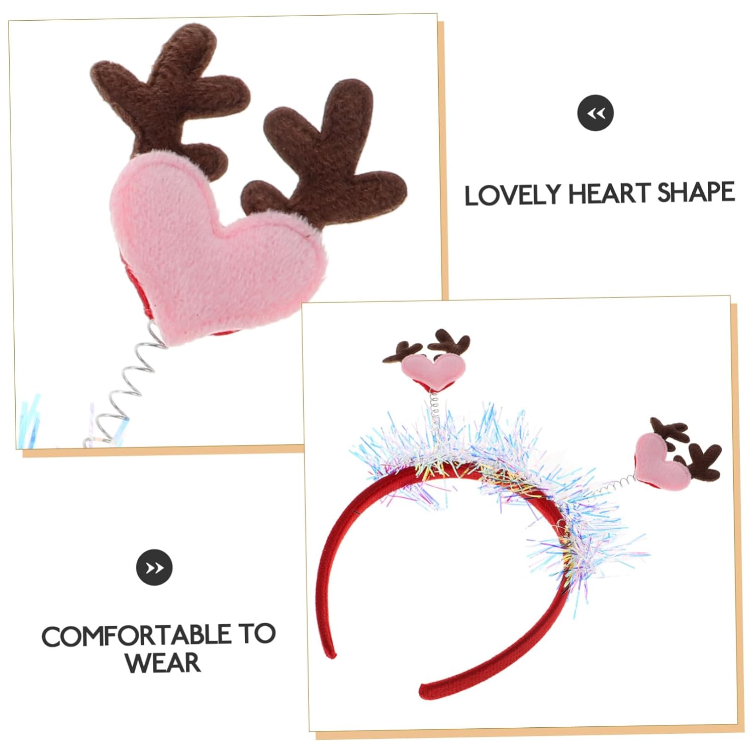 Forcine per capelli con corna di cervo - Costruzione: realizzate in tessuto e materiali per animali domestici, garantiscono un comfort e una lunga durata, Forcine per capelli natalizi con corna di renna - Design carino a cuore: la forma a cuore aggiunge un tocco di dolcezza, rendendolo un accessorio per occasioni festive e romantiche, Fascia per capelli per albero di Natale Fasce per capelli con renne natalizie - Tessuto: Realizzata in tessuto e materiali per animali domestici, garantisce comfort e usura di lunga durata, Fascia per capelli con renne natalizie Copricapo natalizio glitterato - Accessorio versatile: ideale per Capodanno, San Valentino e altre festività così come le dichiarazioni di moda di tutti i giorni, Fascia per capelli di Capodanno con cuore e corna di alce - Stile trendy: il popolare design della fascia con corna di renna mette in risalto la tua personalità unica e il tuo senso della moda, copricapo natalizio
