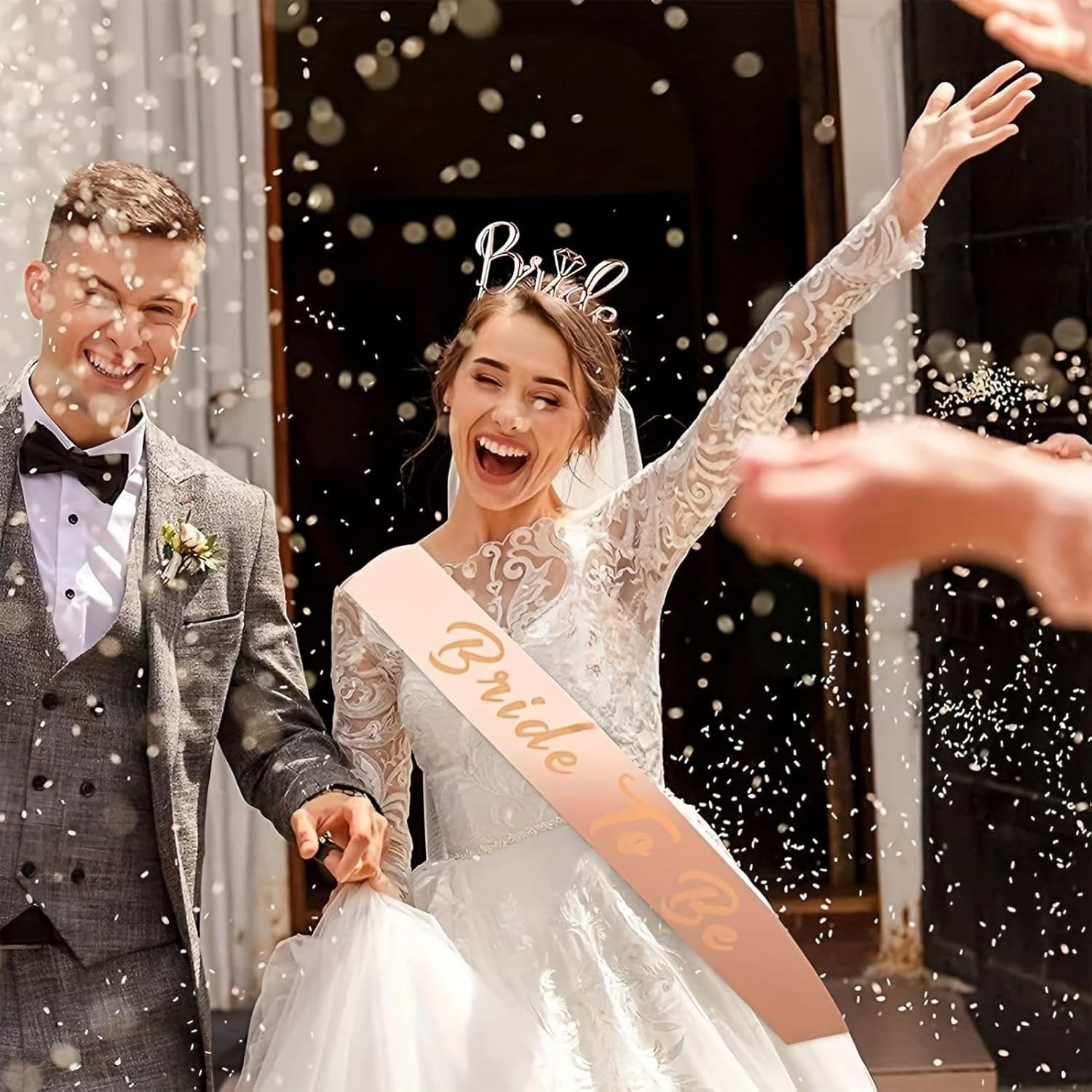 Celebrate il cammino verso il grande giorno con il nostro esclusivo Set per Addio al Nubilato, progettato per rendere ogni festa pre-nuziale un evento memorabile. Questo kit comprende un elegante velo bianco in chinlon con pettine, una tiara in oro rosa e una fascia in raso con scritte dorate, tutti elementi pensati per esaltare la bellezza e l'eleganza della futura sposa. Il velo, leggero e arioso, è l'ideale per completare qualsiasi abito da sposa, mentre la tiara aggiunge un tocco regale senza essere ingombrante. La fascia, morbida e luminosa, è perfetta per distinguere la sposa durante le celebrazioni, assicurando che tutti gli occhi siano puntati su di lei. Questo set non è solo un insieme di accessori, ma un vero e proprio simbolo del passaggio da una vita all'altra, ideale per addii al nubilato, feste di fidanzamento e come accessorio per foto ricordo. Ogni pezzo è stato curato nei minimi dettagli per garantire che la festa sia non solo divertente, ma anche elegante e raffinata. Investite in questo set per assicurare che la festa di addio al nubilato sia un evento indimenticabile, pieno di stile e allegria. Con il nostro kit, la futura sposa si sentirà speciale e amata, pronta a iniziare il nuovo capitolo della sua vita con entusiasmo e felicità.
