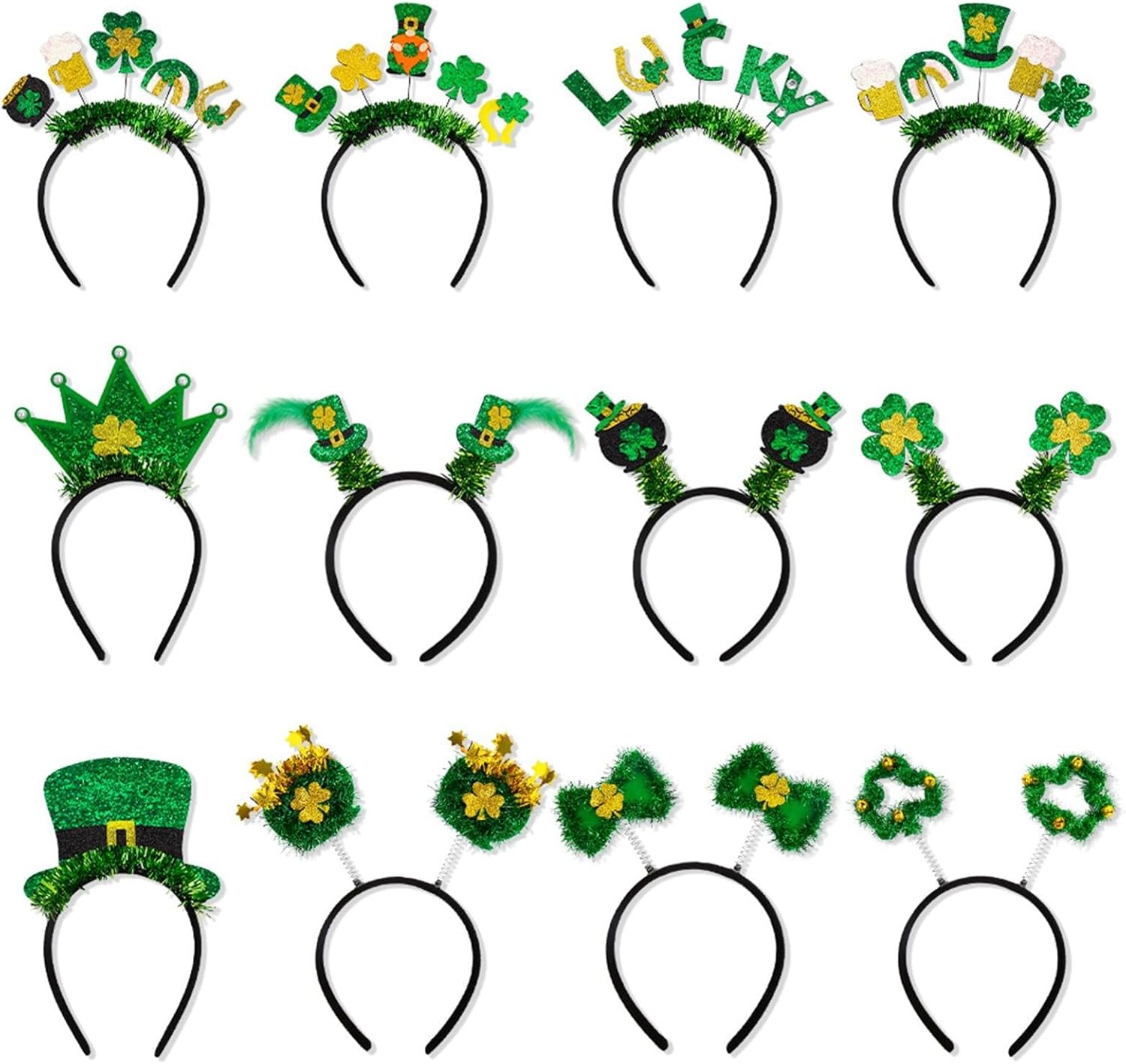 Queste fasce per il giorno di San Patrizio sono realizzate in plastica e tessuto, pratiche, resistenti e durevoli e possono essere utilizzate per un lungo periodo di tempo. Design: dotata di design verde, la fascia per il giorno di San Patrizio è creativa e rende te e i tuoi bambini più carini. Ampiamente usato: adatto per feste di San Patrizio, bomboniere, decorazioni, la fascia verde funge da meraviglioso accessorio per un tema di San Patrizio, vacanze, primavera, Capodanno e altre occasioni festive e divertimento per qualsiasi outfit festivo. Crea una festa: questa fascia crea un'atmosfera festiva per il giorno di San Patrizio, che attira l'attenzione di tutti ed è piena di vigore per incoraggiare il nostro desiderio di festeggiare. Regalo perfetto: se hai intenzione di regalare a familiari, amici o bambini, queste fasce per capelli per il giorno di San Patrizio sono un'ottima scelta, sono così carine e sono sicuro che tutti le adoreranno!
