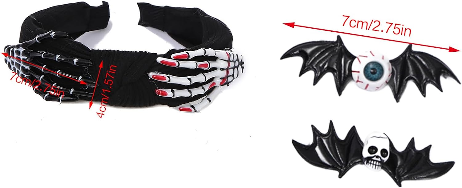 Fascia per capelli scheletro spaventoso per costume cosplay con ali nere per ragazzi e ragazze Caratteristiche: Molto leggero e confortevole, facile da indossare e non danneggerà i capelli. Aspetto molto realistico e bello. Crea un'atmosfera horror sacra per Halloween. Con un accessorio così divertente, la tua festa sarà straordinaria. Gli accessori per capelli di Halloween possono essere facilmente abbinati a una varietà di costumi di Halloween, rendendoli affascinanti e accattivanti tra la folla. Può essere utilizzato per varie occasioni, Halloween, Natale, cosplay, feste a tema, compleanni, carnevali e altre feste di trucco. Una grande famiglia e un amico per Halloween. Caratteristiche: Tessuto + resina. Misura della mano dello Squeeton: ca. 7 x 4 cm. Dimensione della molletta per capelli: ca. 7 x 4 cm. Contenuto della confezione: 1 fascia per Halloween. o 1 fascia per Halloween e 2 fermagli per capelli. Nota: si prega di consentire un errore di 1-2 cm dovuto alla misurazione manuale. Si prega di ordinare solo se si accetta questo margine di errore. Il colore dell'articolo può variare dalla foto a seconda delle impostazioni di visualizzazione e luminosità del computer.