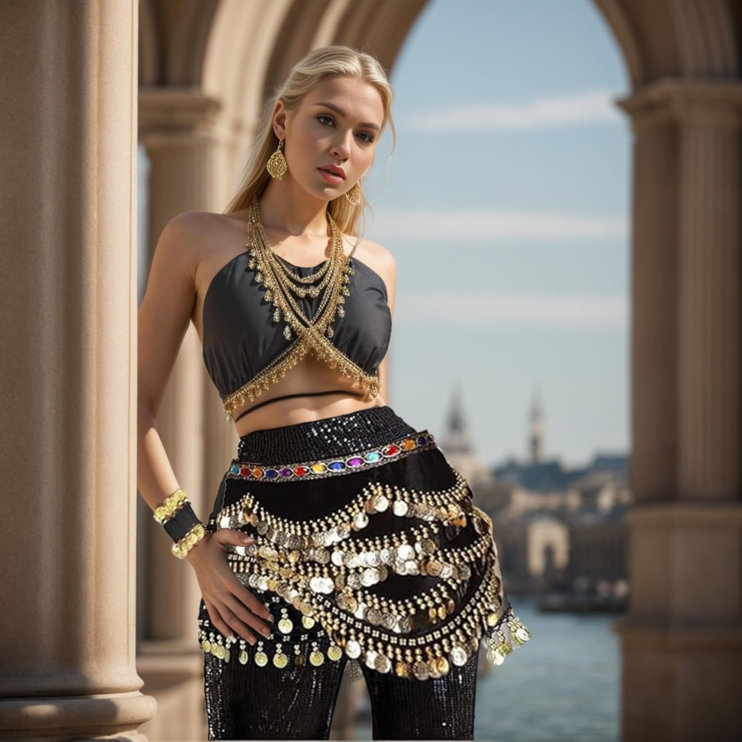 Danza del ventre, foulard da donna, con monete, cintura, gonne, per carnevale, feste, danza del ventre, costume