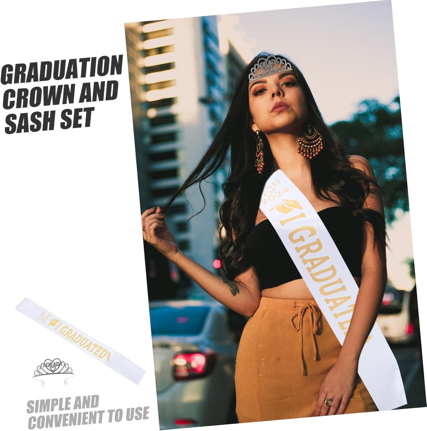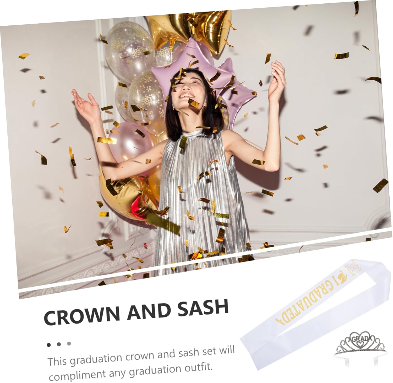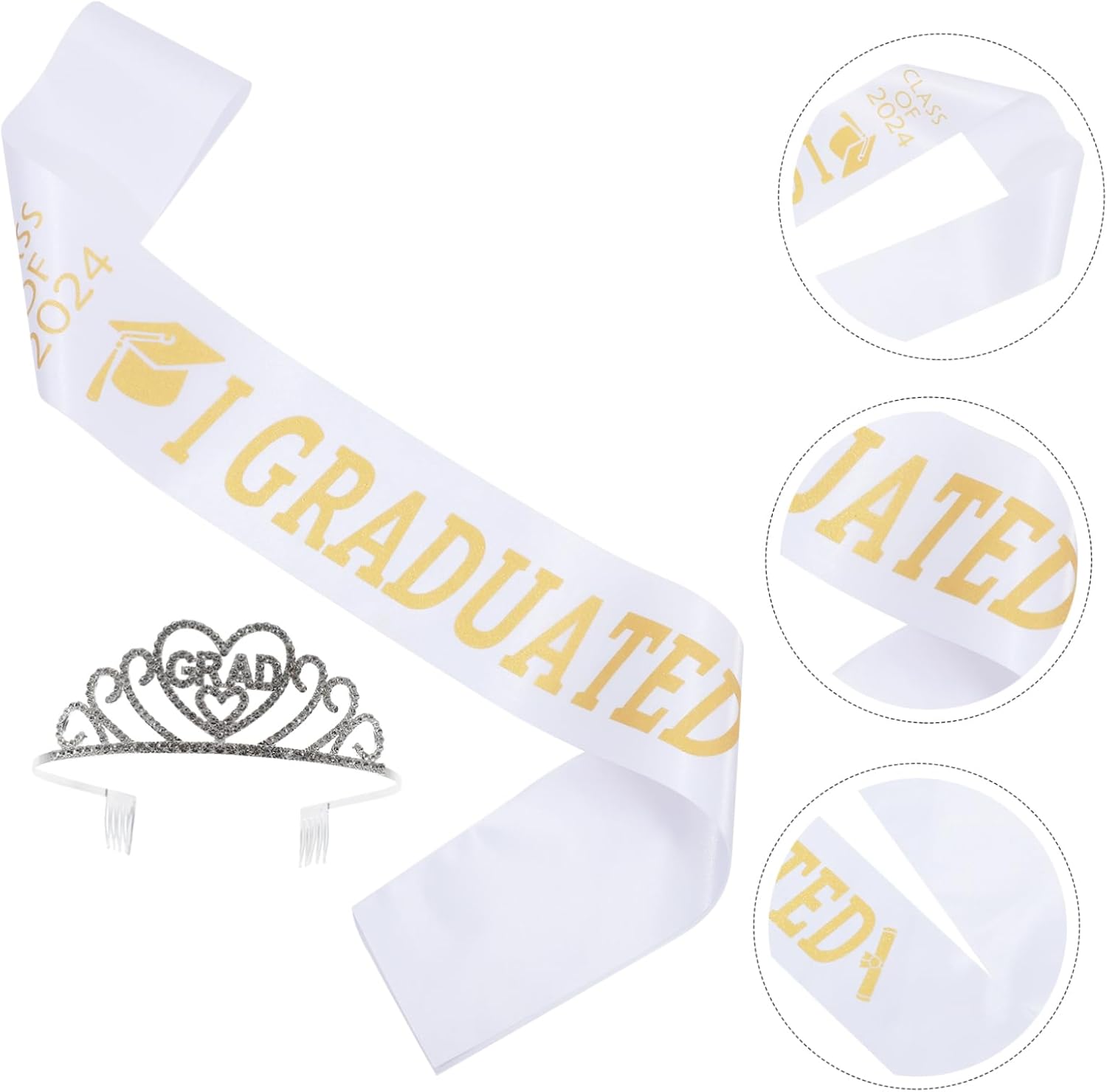 Oggetti di scena per la laurea - La corona di laurea ha un design semplice per essere indossata in modo stabile, la fascia ha una struttura adeguata per essere indossata facilmente. Accessori per costumi di laurea: questo set di fasce per laurea può essere ampiamente utilizzato durante la festa a tema di laurea e soddisfare le tue esigenze di decorazione. Fascia Laurea 2024 – indossare fascia e corona per scattare foto indimenticabili, qualcosa da laureati. Decorazione per abiti da laurea - Perfetta per spettacoli di danza: adatta per spettacoli di danza, feste di laurea e altre occasioni. Accessori per feste di laurea: puoi inviare la corona di laurea e il set di fasce agli amici dei tuoi laureati e a loro piacerà molto.