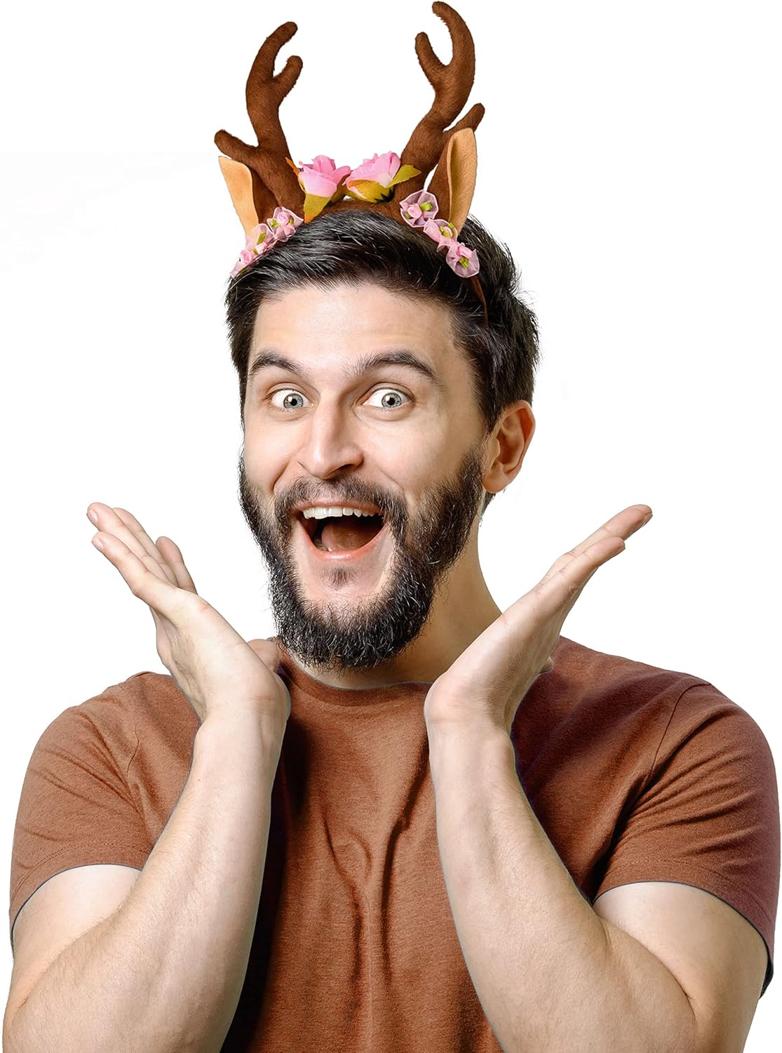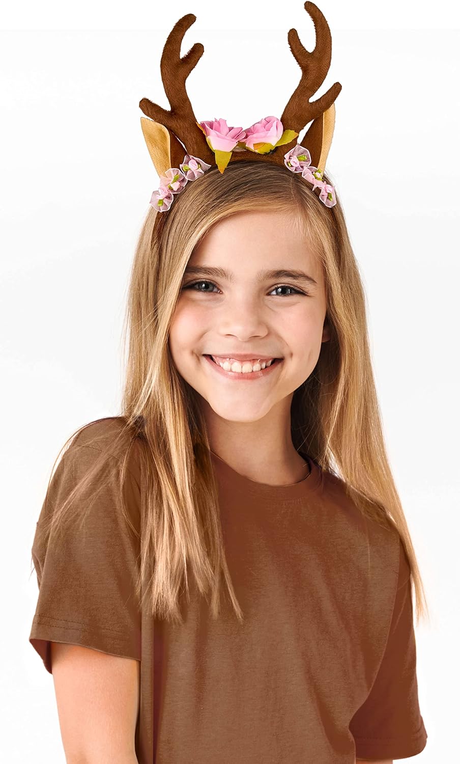 fascia per renna con orecchie, corna e fiori, fiori, piccoli fiori, cervo, corna di cervo, corna di animali, costume da donna, Halloween, carnevale, Natale, accessori photobox