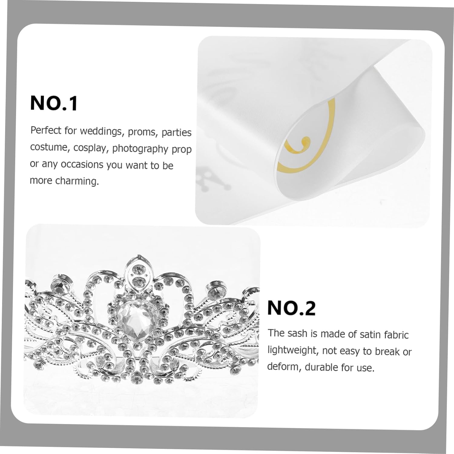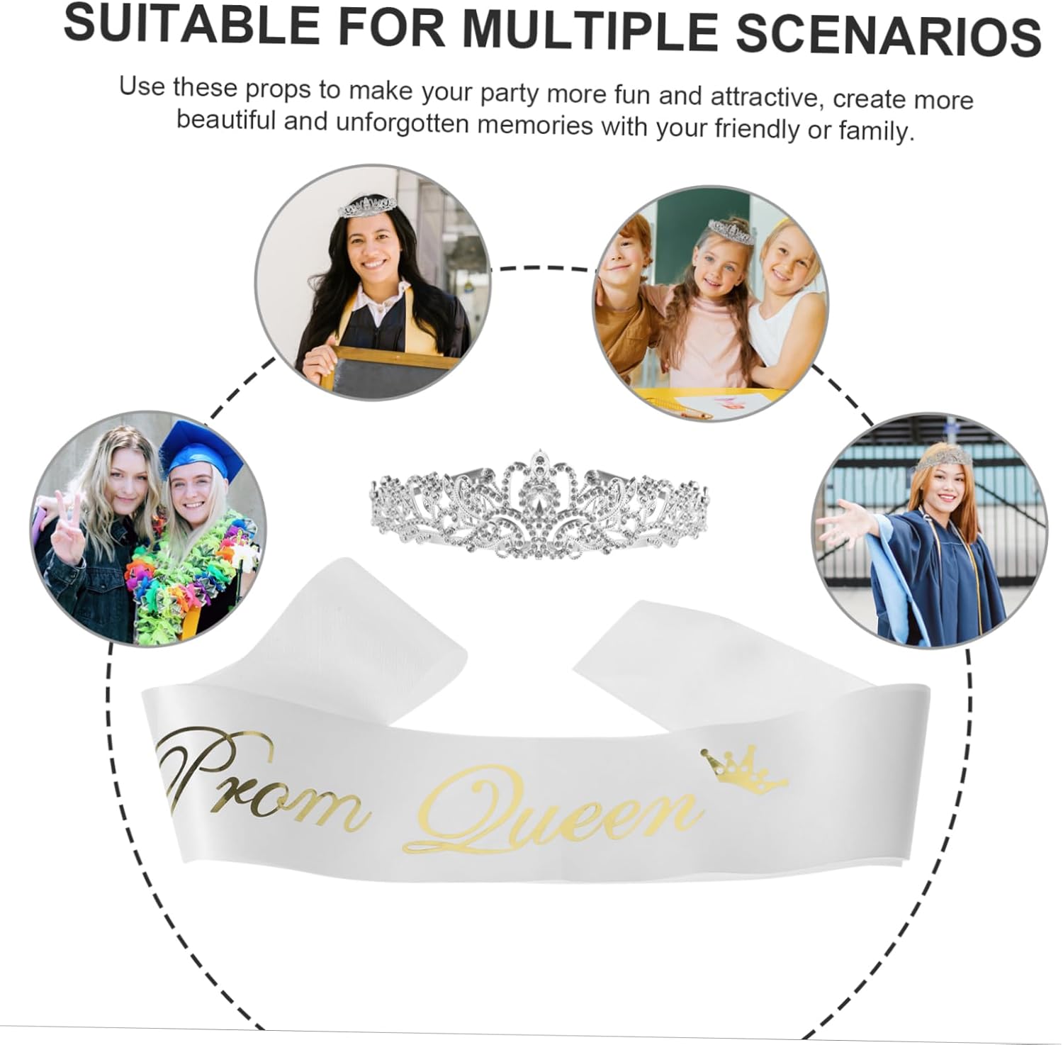 Il pacchetto include 1 x fascia 1 x Caratteristiche - : in cristallo bianco -Materiale della fascia: raso, strass e cristalli. Decorazioni per la laurea. -Perimetro della fascia: 40 cm/15,74 pollici, : 13 cm/5,11 pollici. e fascia per feste -Dimensioni della fascia: circa 160x9,5 cm/62,99x3,74 pollici. da ballo - Dimensioni della : circa 5 cm/1,97 pollici, lunghezza dell'arco: 24,5 cm/9,64 pollici fascia in raso da regina. - Questa è splendidamente decorata con strass scintillanti, rendendoti accattivante. Fascia per - Include un copricapo a e una fascia da reginetta del ballo. con pettine. - Squisitamente affascinante, ti dà un senso di aristocrazia, rendendoti più affascinante, dolce e attraente per ogni occasione. Fascia in raso da reginetta del ballo di fine anno. - La fascia è realizzata in tessuto satinato, leggero, non facile da rompere o deformare, per l'uso con la di laurea. - Per matrimoni, balli di fine anno, feste, costumi, cosplay, accessori per servizi fotografici o qualsiasi occasione in cui desideri essere più affascinante, indossa la fascia da regina del ballo e la . Descrizione della merce di laurea Usa questi oggetti di scena per rendere la tua festa più divertente e attraente, crea ricordi più belli e indimenticabili con i tuoi amici o la tua famiglia. Fascia in raso da reginetta del ballo Questo pacchetto include 1 pezzo di e 1 pezzo di fascia da reginetta del ballo, un set di accessori per costumi per la tua festa di matrimonio, ballo di fine anno, festa danzante, ecc.