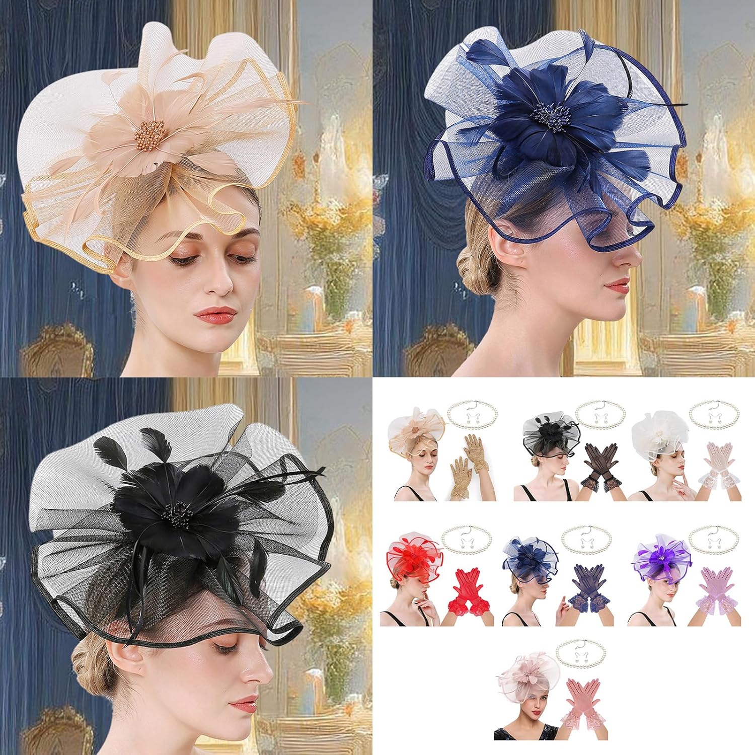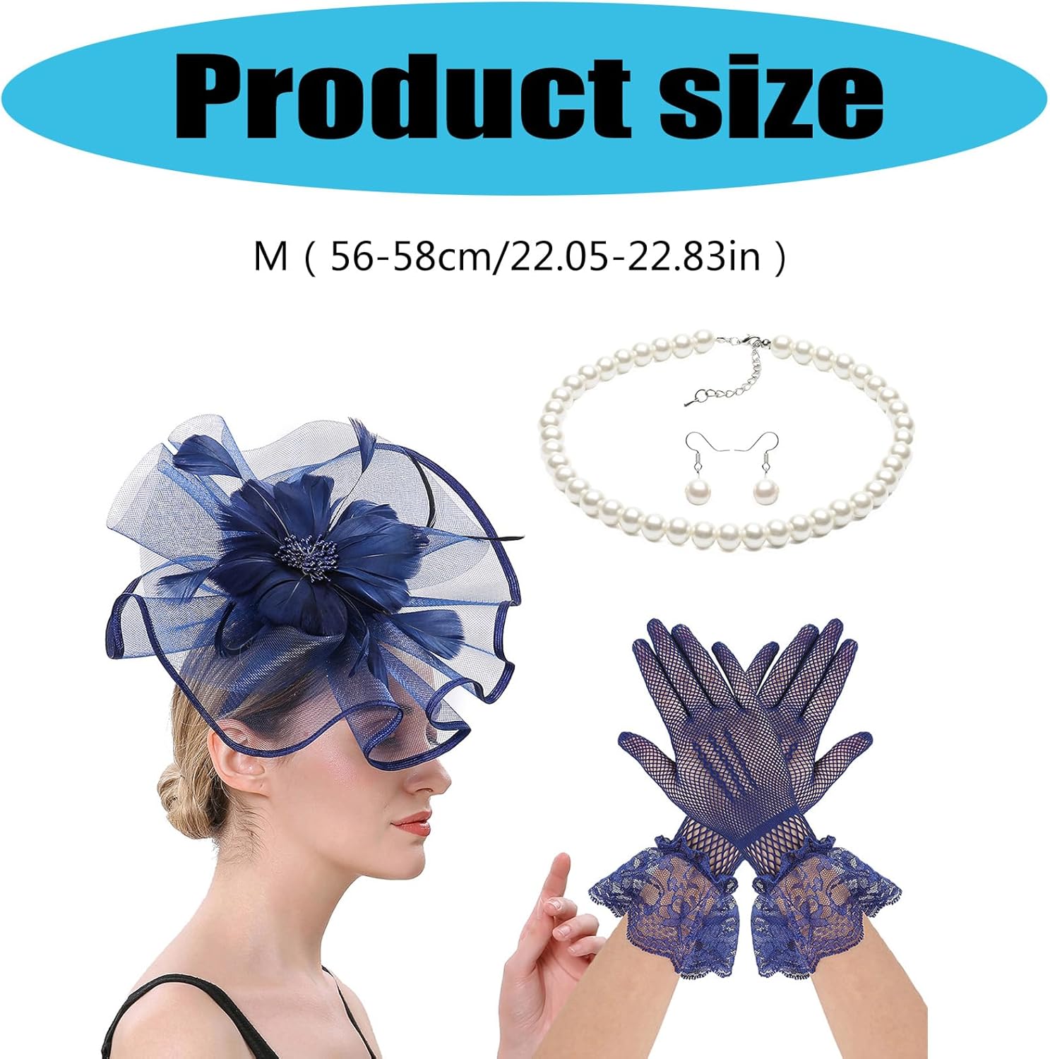 Fascinator Costume Set Con Fiore Fermacapelli Guanti Collana Per Matrimoni Feste a Tema Teaparty Corse di Cavalli Evento Caratteristiche: Elegante set di copricapo, traspirante e comodo da indossare per corse di cavalli, eventi e occasioni formali. Utilizzare pizzo tulle selezionato e costruzione stabile, con look elegante con design alla moda per varie occasioni a tema. Ideale per donne alla moda alla ricerca di sofisticati accessori per capelli per impegno sociale all'aperto e styling di eventi speciali. Perfetto per abbigliamento da gara, costume da festa di nozze, eventi a tema o ensemble cittadini quotidiani con il suo design multiuso. Questo set di ornamenti per capelli garantisce comodo da indossare per pelli sensibili, mantenendo la ritenzione del colore vibrante durante più stagioni. Specifiche tecniche: Componente: Tulle Dimensioni del prodotto: come da immagine. Colore: 7 colori opzionali, come mostrato nelle immagini. La confezione include: 1 fermaglio per capelli a forma di fiore. 1 collana. 1 paio di guanti 1 paio di orecchini. Nota: Si prega di considerare un margine di errore di 1-2 cm dovuto alla misurazione A causa delle differenze tra i diversi monitor, l'immagine potrebbe non rispecchiare il colore reale dell'articolo.