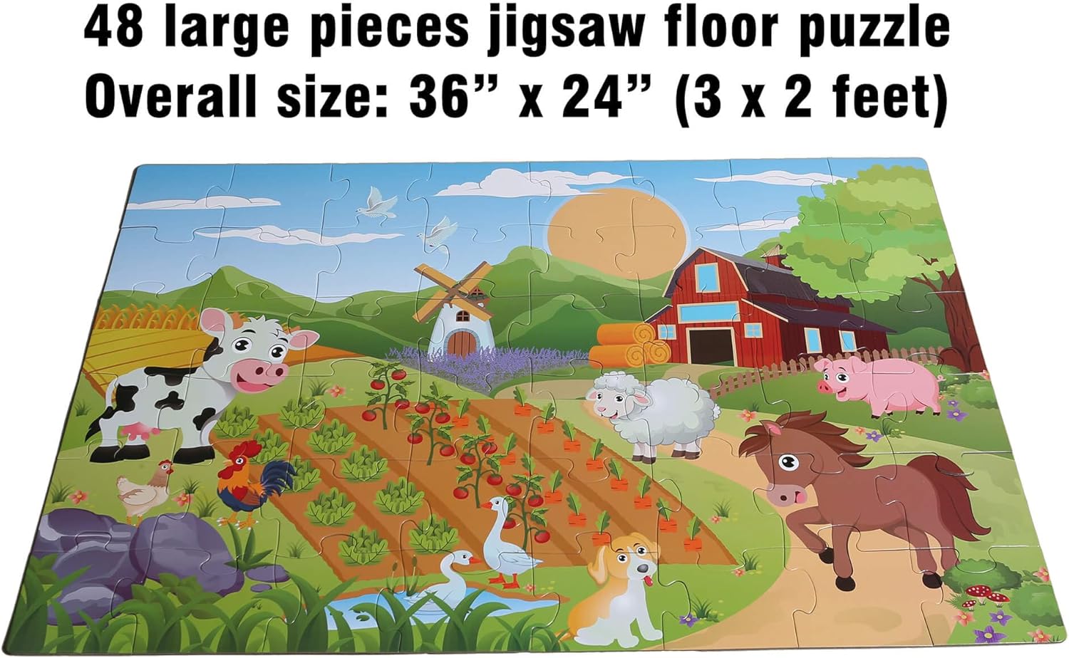 Divertimento ed educazione a tema fattoria: lascia che il tuo bambino si immerga nel mondo degli animali della fattoria con questo accattivante puzzle da pavimento jumbo, con illustrazioni vivide che suscitano curiosità e apprendimento. Grande formato puzzle: con 48 pezzi di grandi dimensioni, questo puzzle da 36 x 24 pollici è perfetto per le mani piccole, quindi i bambini saranno facili da afferrare e assemblare. Promuovere lo sviluppo cognitivo: aiuta a migliorare le capacità di risoluzione dei problemi, la coordinazione visiva e dei movimenti e le abilità motorie fini in modo divertente e interattivo. Durevole e sicuro: realizzato in cartone spesso di alta qualità con un rivestimento atossico, questo puzzle è progettato per sopportare l'entusiasmo dei giovani puzzle mentre è sicuro per giocare. Regalo ideale per bambini: un regalo pensato per compleanni, feste o qualsiasi occasione speciale, perfetto per bambini e bambine dai 3 anni in su.