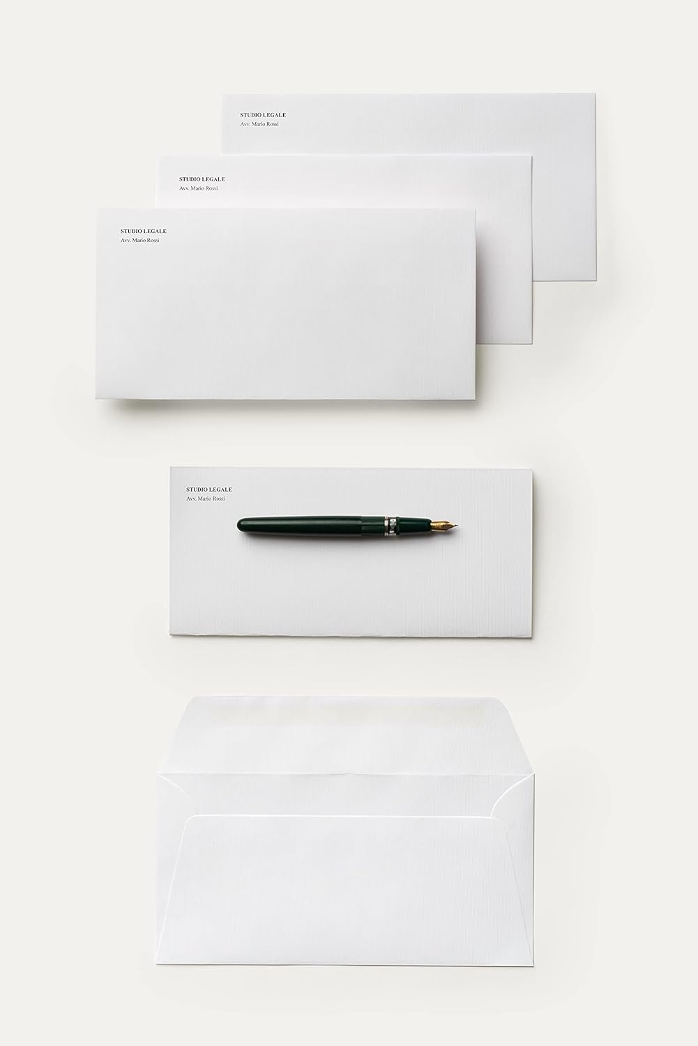Busta adesiva con strip da 100 grammi in carta Calligraphy con tramatura millerighe. Formato 110x220mm