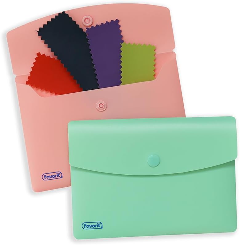 Formato A6: Adatte per contenere il documento del Green Pass Buste con bottone pastello realizzate in polipropilene opaco ad elevato spessore nei colori pastello Chiusura con bottone a pressione colorato in tinta Indispensabili per proteggere e trasportare I documenti Confezione da 5 pezzi nei colori pastello: lilla, azzurro, rosa, arancione, verde
