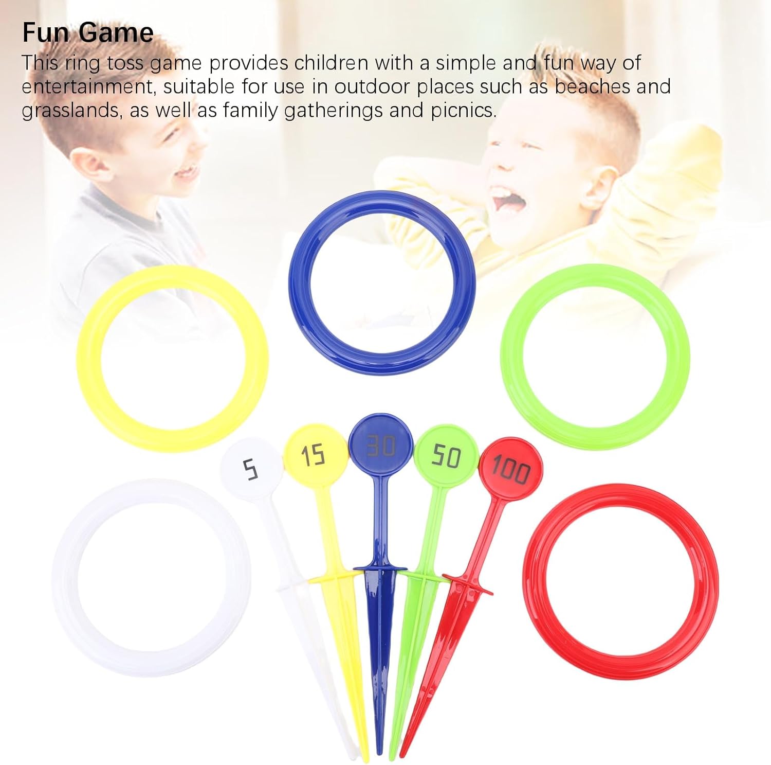 [MATERIALE RESISTENTE E SICURO] Realizzato in plastica resistente, questo giocattolo da lancio ad può resistere a giochi all'aperto difficili senza compromettere la sicurezza. [GIOCO VIVACE E INTERATTIVO] organizza riunioni all'aperto con questo avvincente gioco di lancio degli anelli che garantisce ore di risate e divertimento sia per i bambini che per gli adulti. [MIGLIORA LA COORDINAZIONE] Sfida i bambini a mirare con attenzione e a migliorare la coordinazione occhio-mano e le capacità motorie mentre giocano a questo divertente gioco di lancio. [LEGAME ATTRAVERSO IL GIOCO] Rafforza le relazioni familiari e crea ricordi gioiosi con questo gioco di lancio all'aperto per famiglie che incoraggia il lavoro di squadra e l'interazione sociale. [ADATTO A TUTTE LE SUPERFICI] Sia in spiaggia che al mare, questo versatile gioco ad garantisce ogni volta una piattaforma stabile per un gioco divertente.