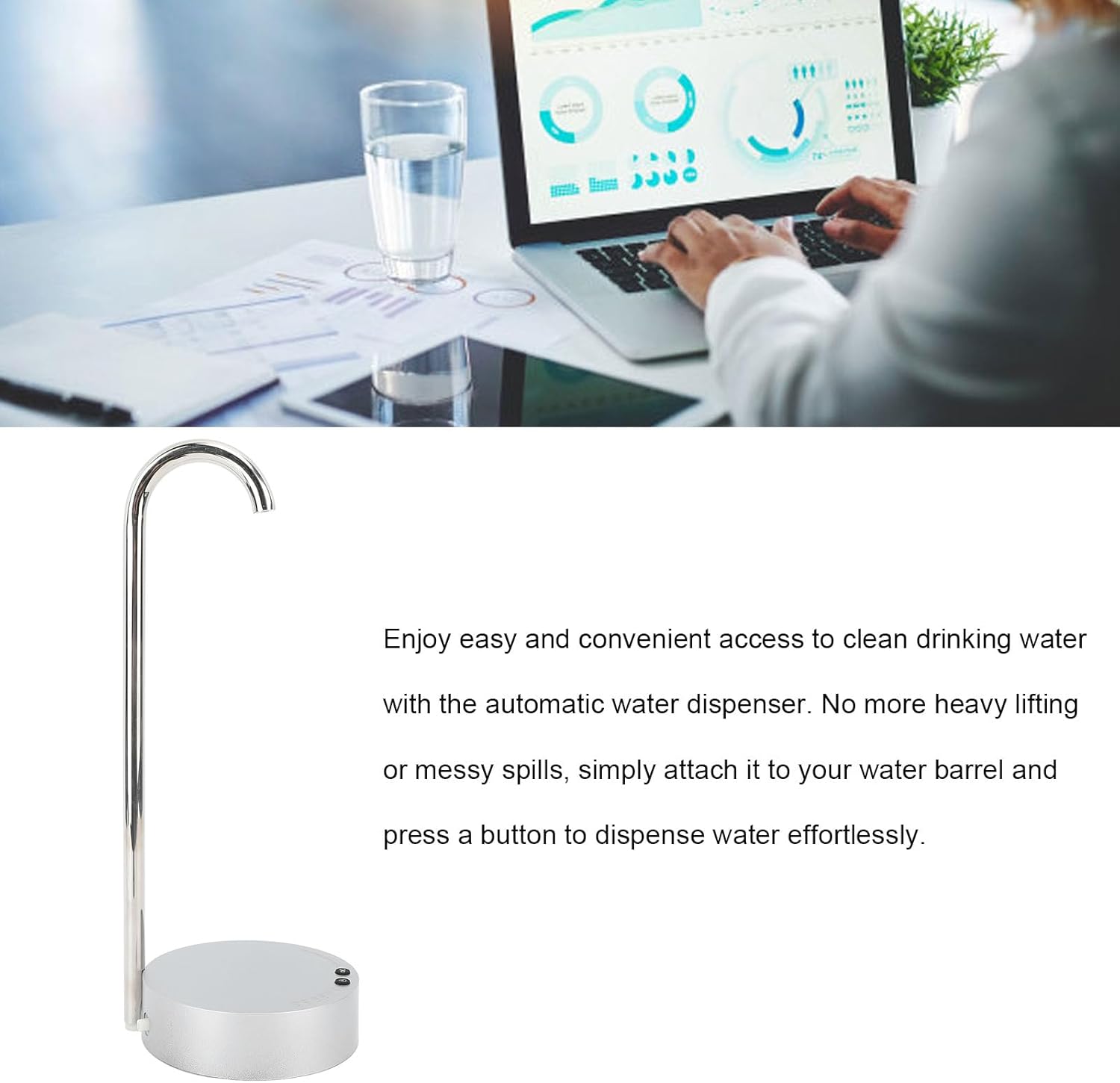 [Durevole e affidabile] Realizzata in ABS e acciaio inossidabile, questa pompa è di lunga durata. La batteria integrata da 1800 mAh garantisce un'alimentazione continua e affidabile per un'erogazione senza interruzioni. [Facile da usare] Presenta una semplice operazione tramite pulsante per un'erogazione 'acqua senza sforzo. Passa a questa pompa elettrica intelligente e dì addio alle pompe manuali. [Pressione 'acqua minerale] Sperimenta i benefici 'acqua minerale con una pressione perfetta per un'acqua pulita e ricca di minerali, che promuove la salute e il benessere. [Design a doppio scopo] Utilizzare facilmente su barili d'acqua o scrivanie. Adatto per la casa, l'ufficio e l'uso esterno, fornisce acqua rinfrescante sempre e ovunque. [Facile accesso all'acqua] Goditi l'acqua potabile pulita senza sforzo con la pompa automatica. Nessun sollevamento pesante o fuoriuscite, basta premere un pulsante per l'erogazione istantanea 'acqua.