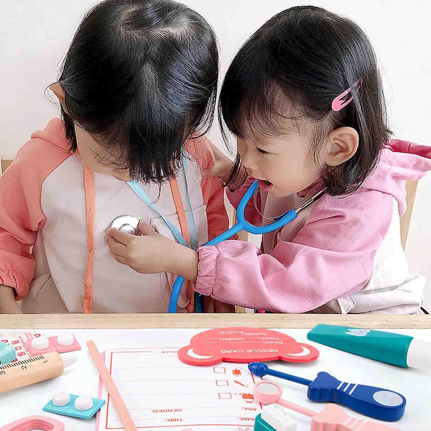 [INTERAZIONE FAMIGLIA] Rafforza il legame genitore-figlio facendo partecipare i genitori a giochi di ruolo con questo set educativo da medico. [RICCHI ACCESSORI] Migliora l'esperienza di gioco con una varietà di strumenti medici inclusi in questo set di gioco di alta qualità. [Gioco fantasioso] Incoraggia il gioco di ruolo e libera la tua creatività con questo set da dottore progettato per lo sviluppo fantasioso dei bambini. [GIOCATTOLO EDUCATIVO] Insegna alle menti le conoscenze di base e l'etica incoraggiando la responsabilità attraverso il gioco. [LA SICUREZZA PRIMA] Realizzato con materiali in legno e tavola di alta qualità per garantire la sicurezza del tuo bambino durante il gioco.