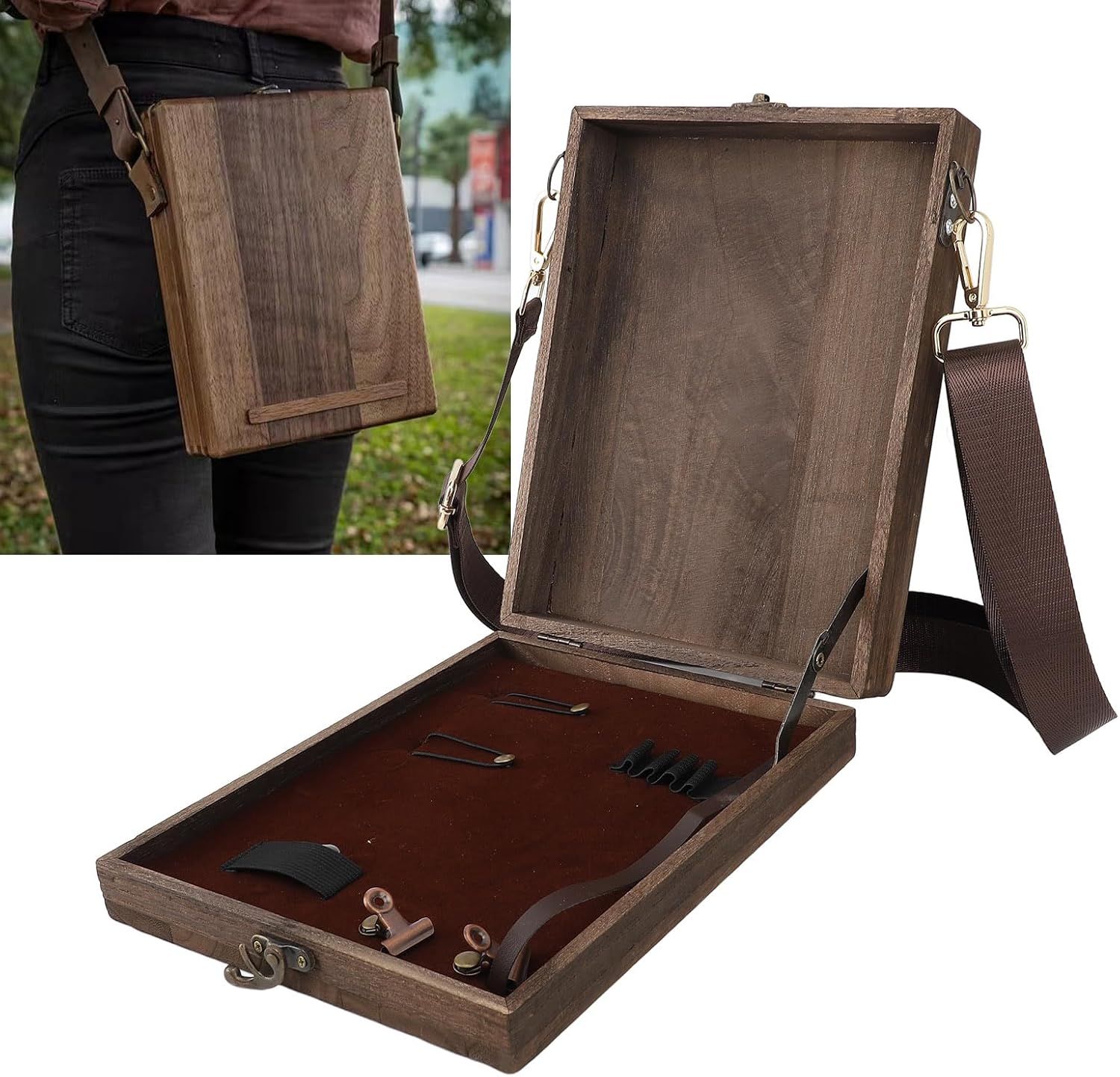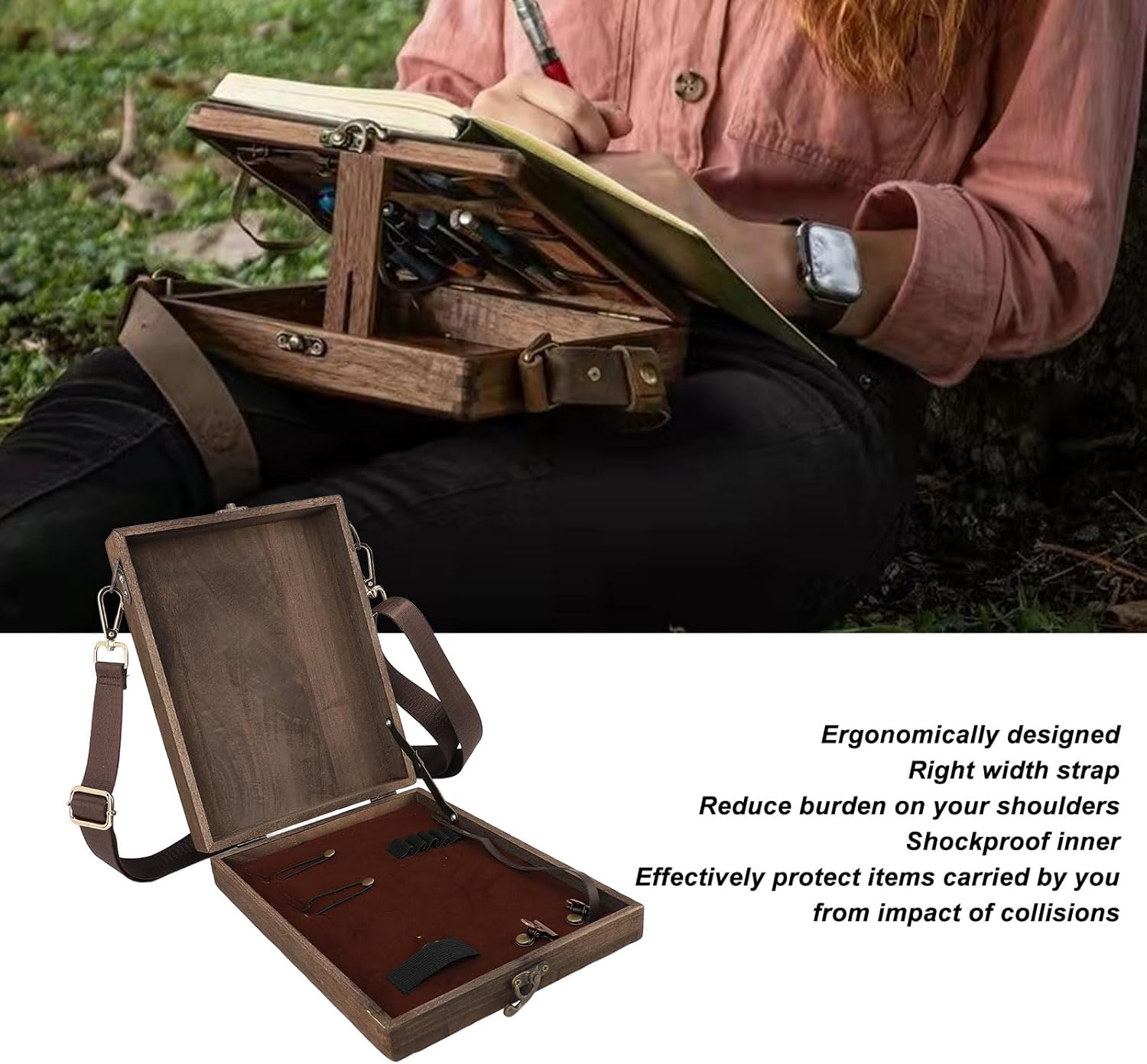 [Progettato ergonomicamente] Questa borsa a tracolla dello scrittore è progettata ergonomicamente con una cinghia di larghezza comoda per ridurre la tensione della spalla durante l'uso. [Elegant Style] Lo scrittore di valigette di cartella Messenger Box adotta un design semplice e alla moda, con un aspetto elegante adatto per varie occasioni. [Design multifunzionale] La scatola di legno di Writers Messenger dispone di speciale slot per penna e una comoda conservazione di vari articoli di cartoleria e piccoli, rendendolo un compagno di lavoro ideale. [Protezione da shock -heart] La scatola di scrittura portatile è resistente agli shock, fornendo una protezione efficace per i tuoi effetti personali dalle collisioni mentre sono in viaggio. [Materiale robusto] La scatola di messaggistica della valigetta della cartella della cartella è realizzata in legno massiccio, che fornisce una forte resistenza all'usura per l'uso di lunga durata.