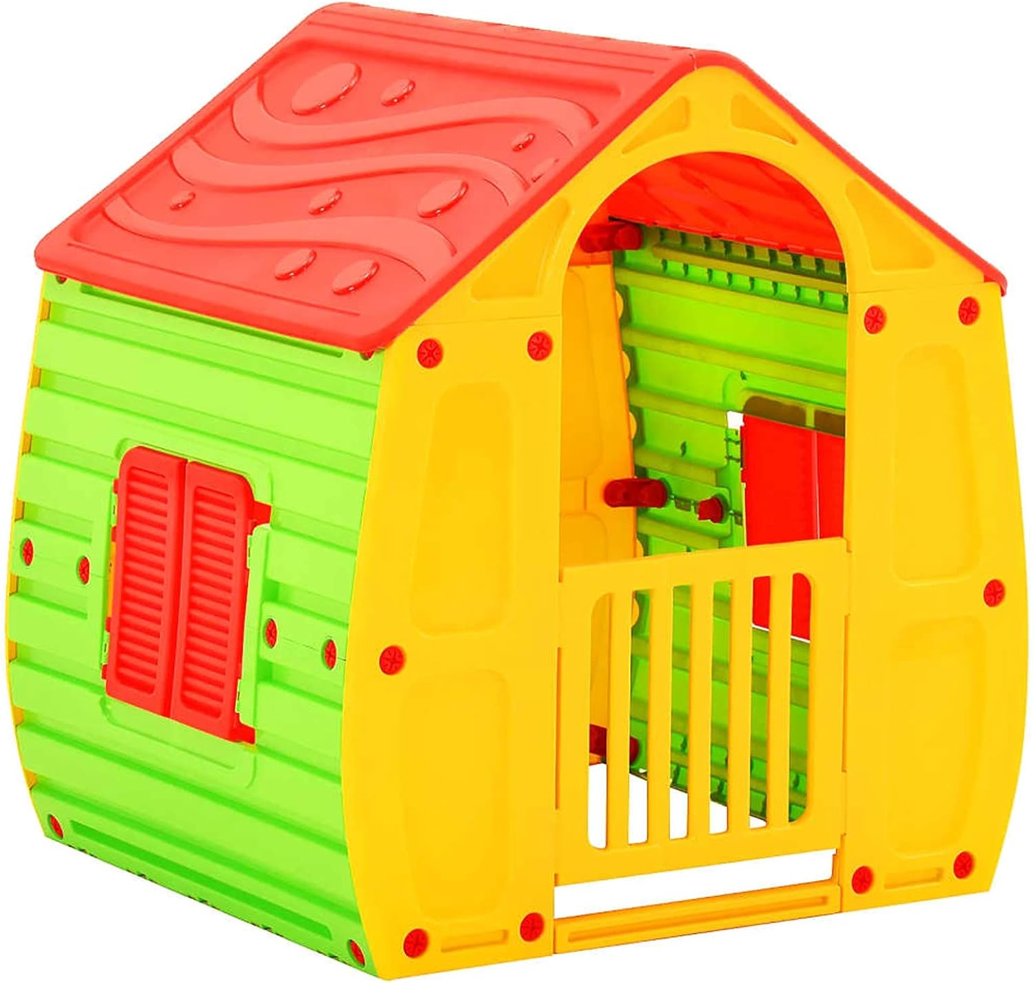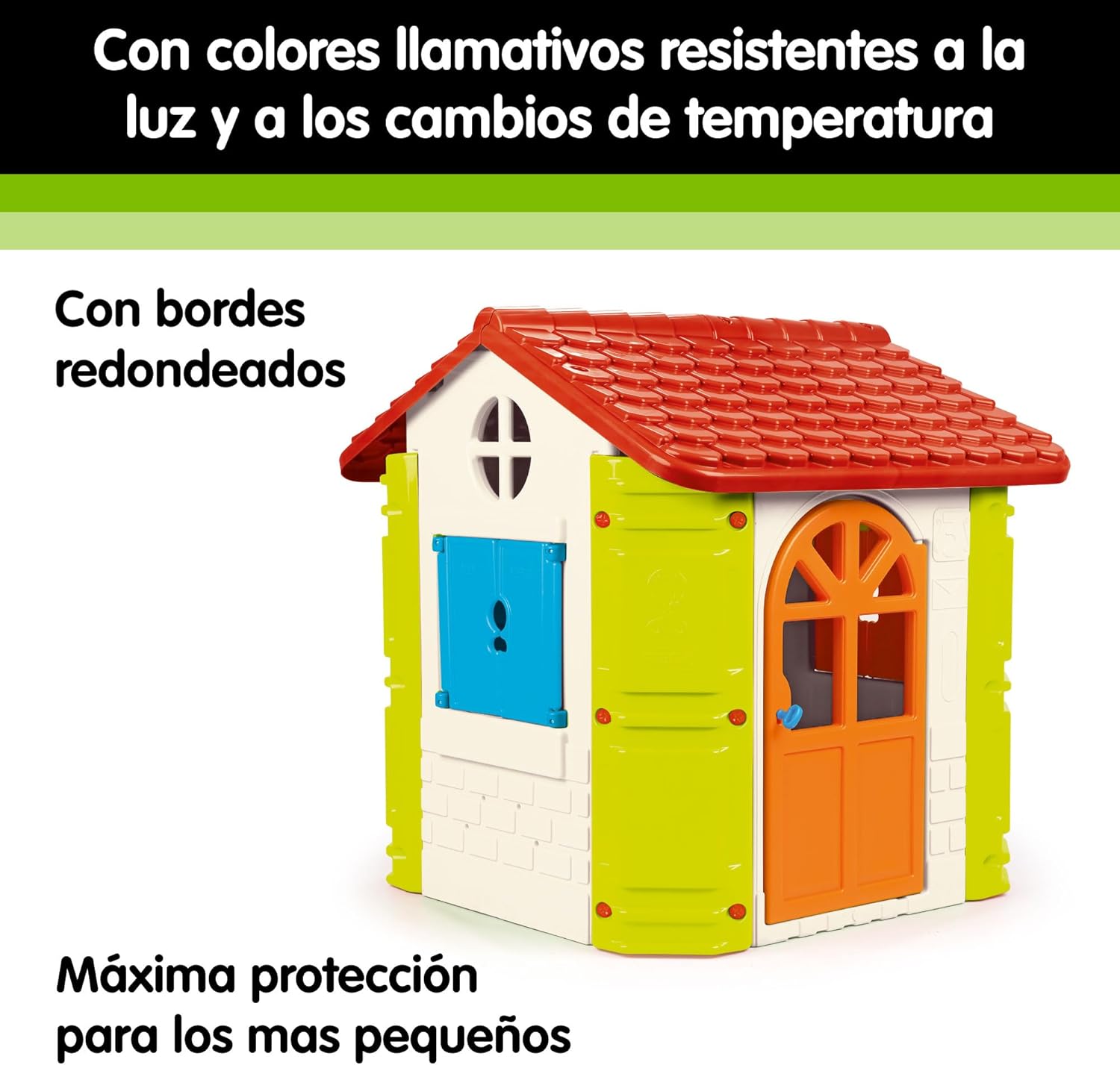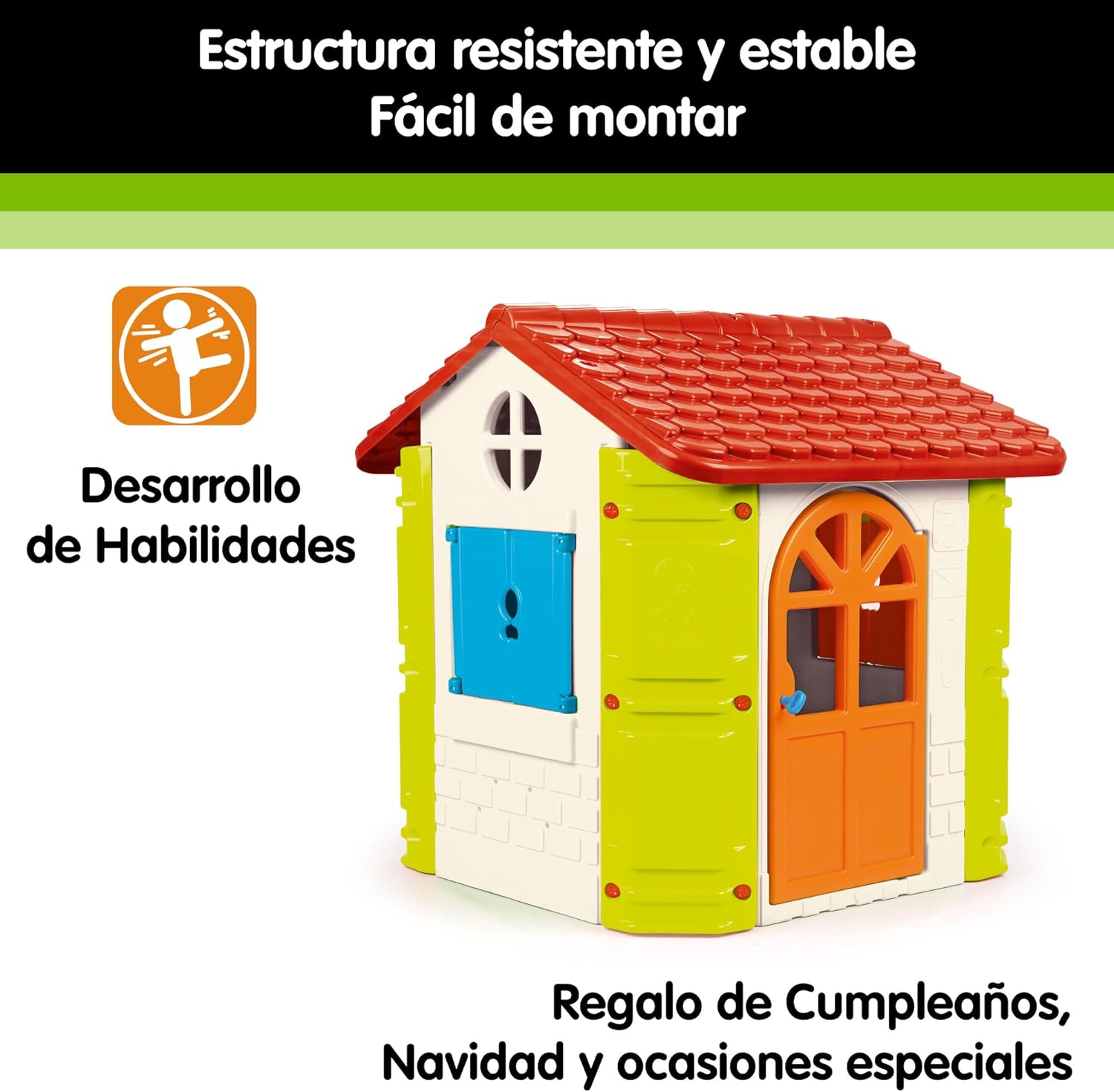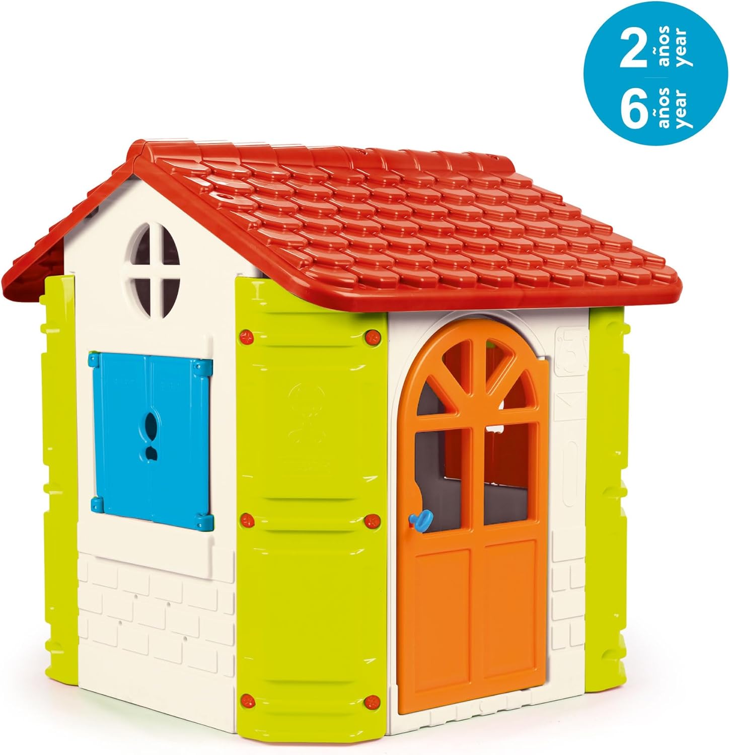 Casetta per bambini da giardino: FEBER House è una casa dei giochi per bambini da interno e da esterno, per giocare da soli, in famiglia o con gli amici, grazie al suo interno spazioso Casetta da giardino bambini: Una casetta da gioco con una porta pieghevole con chiave e serratura per aprirla, in modo sicuro, non si blocca, e 2 finestre pieghevoli Casetta plastica bambini: la casetta ha un tetto rosso, pareti bianche con angoli verdi, finestre blu e una porta arancione; colori vivaci e resistenti alla luce del sole, agli sbalzi di temperatura e a fenomeni temporanei come la pioggia Casette da giardino bambini robuste: struttura robusta per la sicurezza dei bambini; per bambini dai 2 ai 6 anni Casetta giardino bambini: il montaggio di questa casetta da giardino è semplice; il tempo approssimativo con i materiali, gli attrezzi e le istruzioni incluse è di 30 minuti