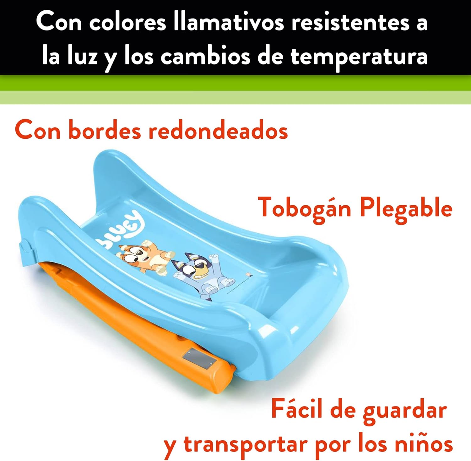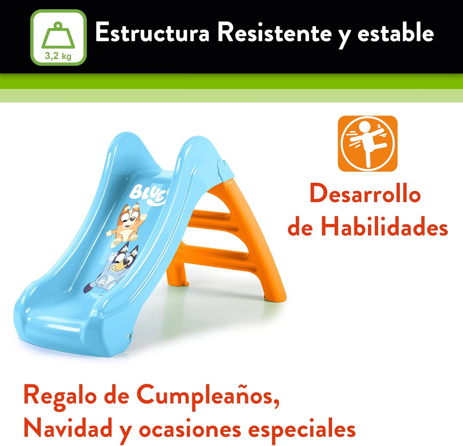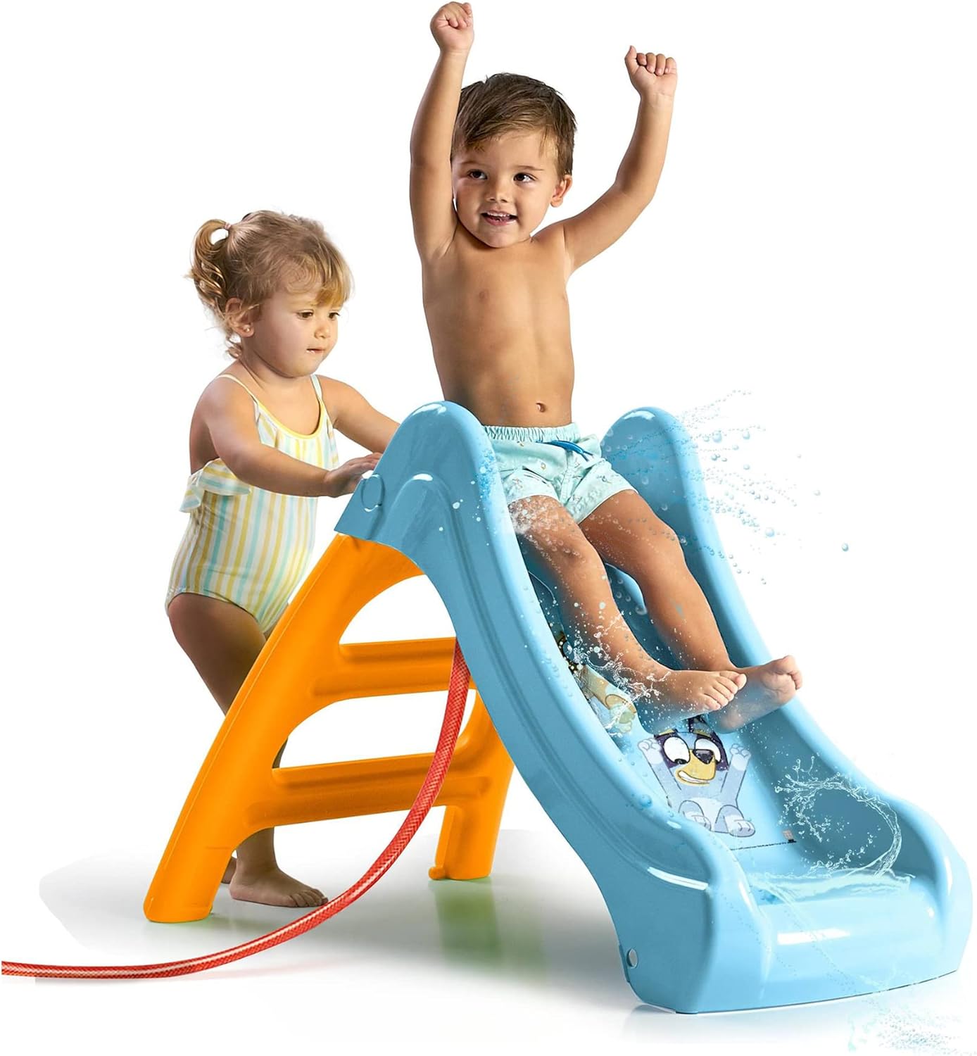Feber First Slide Bluey è un piccolo scivolo per bambini di età compresa tra 12 mesi e 5 anni con un peso massimo consigliato di 50 kg. Questo scivolo da giardino è un 2 in 1, può essere utilizzato collegando un tubo come scivolo d'acqua e si trasforma in scivolo d'acqua per un divertimento extra. La slitta compatta è facile da montare e smontare per riporla comodamente dopo l'uso; molto pratica perché può essere ripiegata per essere riposta. Una diapositiva con colori molto luminosi, vividi e brillanti, resistenti alla luce solare e agli sbalzi di temperatura. Si tratta di un classico giocattolo da esterno; una struttura robusta per la sicurezza del bambino che aiuta a sviluppare le capacità motorie; Elevata resistenza e facile da montare. Peso del prodotto: 2,6 kg. Dimensioni prodotto: 105 cm di lunghezza x 54 cm di altezza x 64,5 cm di larghezza