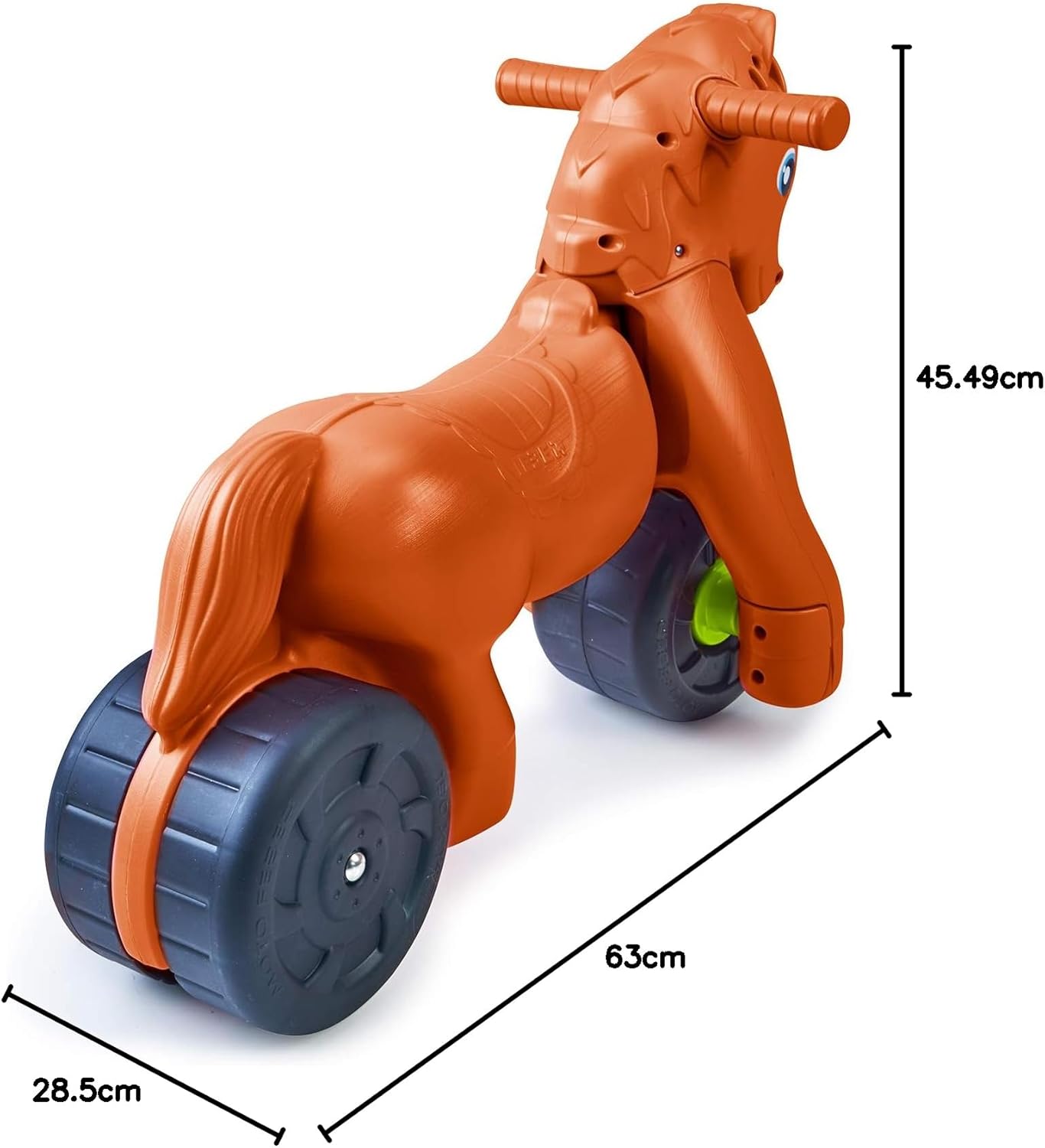 Primipassi a forma di cavallo Per bambini a partire da + 18 mesi; peso massimo consentito 25 Kg Con ruote che assicurano stabilità e resistenza Aiuta lo sviluppo delle capacità cognitive e motorie Dimensioni del prodotto assemblato: 63 cm (L) x33 cm (W) x 45.5 cm (H); altezza dal terreno: 28.5 cm