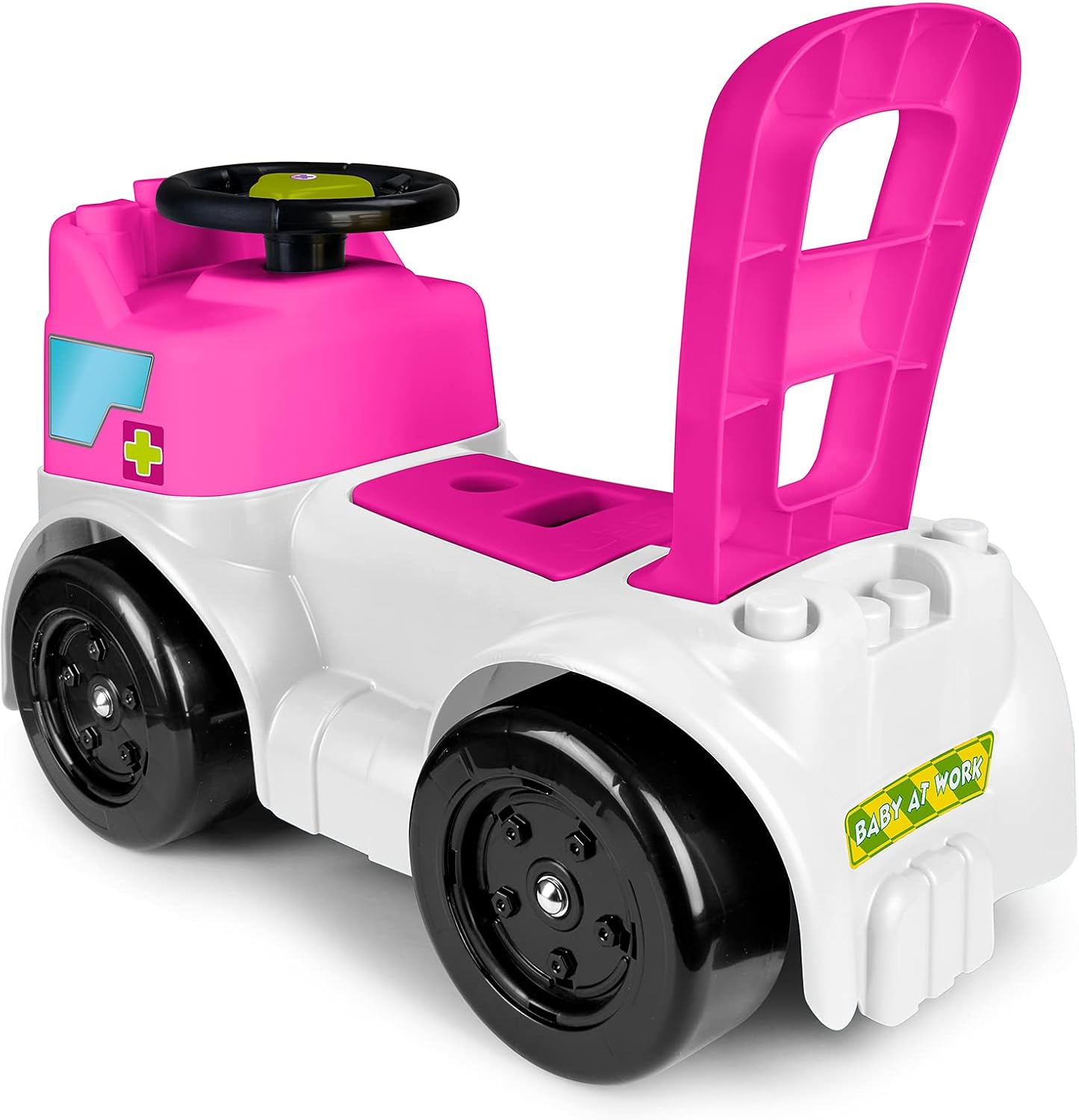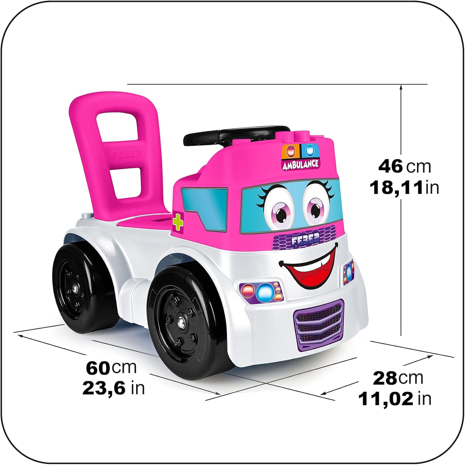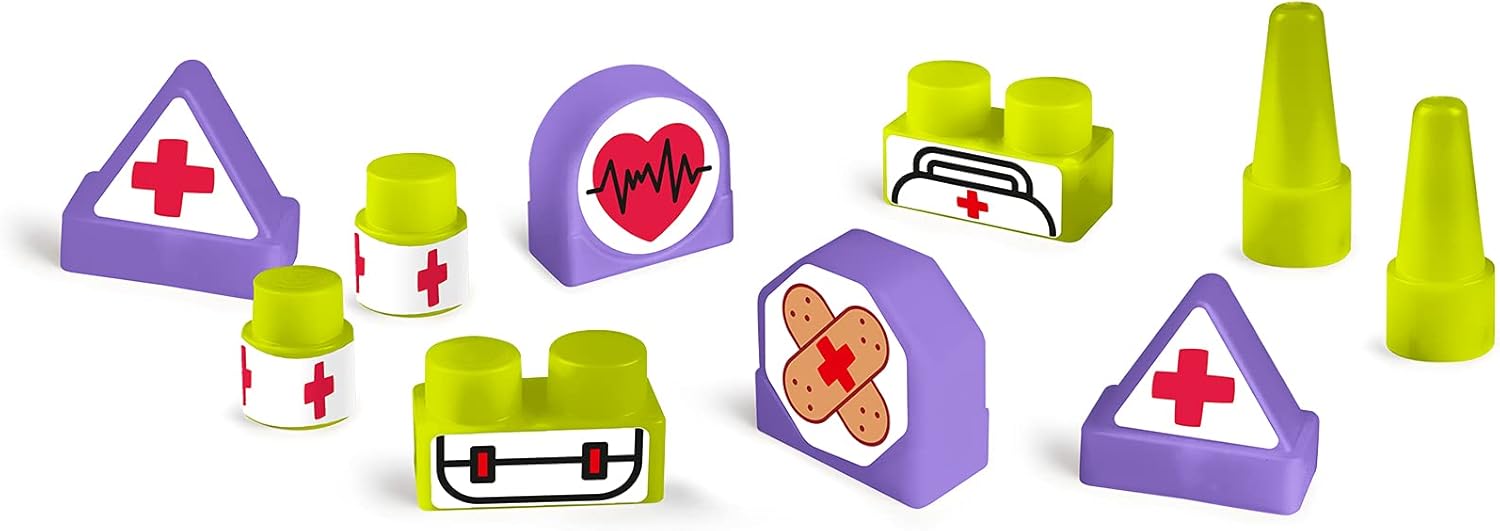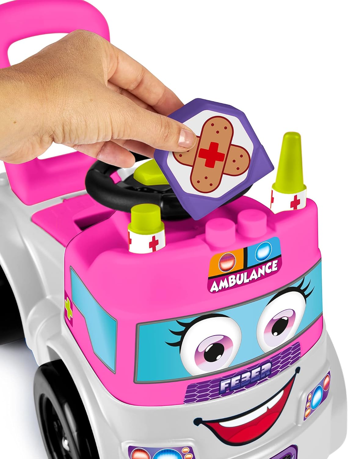 Motofeber Block Ambulanza è un 3 in 1: primi passi, spingi e vai e con gioco delle forme; dopo aver giocato, sarà possibile riporre tutti i blocchi nel vano porta oggetti 10 diversi blocchi per imparare I colori, forme e segnali Aiuta lo sviluppo delle capacità motorie e cognitive Con ruote larghe garantire stabilità e resistenza Dimensioni del prodotto montato: 60 cm (L) x 28 cm (L) x 46 cm (H)