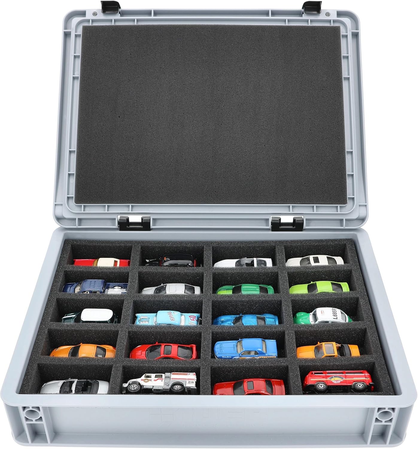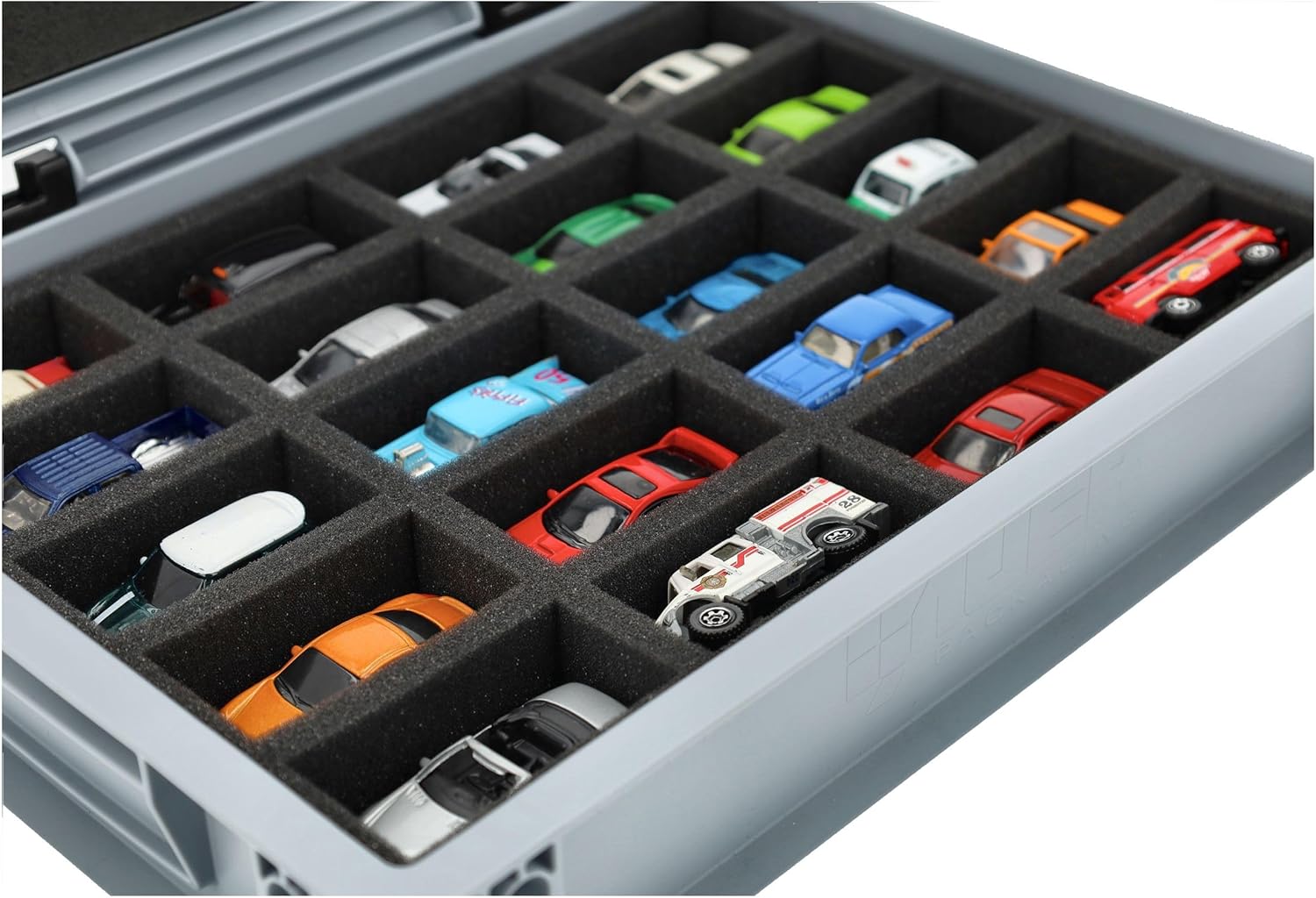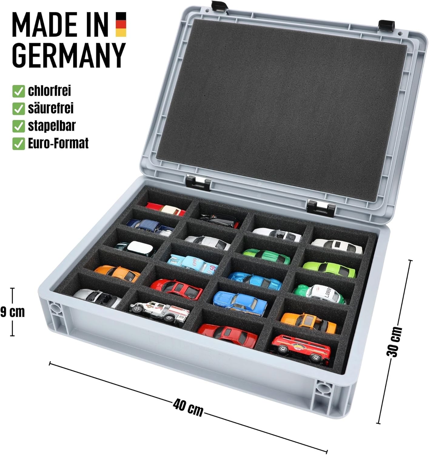 Feldherr Eurobox Set per automodelli in scala 1:64 - scatola di immagazzinamento e trasporto con inserto in schiuma per 20 veicoli pressofusi Ogni scomparto misura circa 80 x 42 x 30 mm - si adatta ai veicoli pressofusi standard in scala 1:64 - protegge la vernice e i dettagli in modo affidabile Eurobox impilabile (dimensioni esterne: circa 400 x 600 x 90 mm) con robusto coperchio incernierato - include topper in schiuma, tappetino interno al coperchio e base in schiuma - resistente, pratico e affidabile Set completo per collezionisti, rivenditori ed espositori - trasporto sicuro, conservazione protetta dalla polvere, pronto all'uso 👉 Le figure e i componenti del gioco mostrati sono solo per confronto di dimensioni e non sono inclusi. I modelli stampati in 3D possono presentare piccole imperfezioni. Le immagini del prodotto mostrano possibili risultati finali.