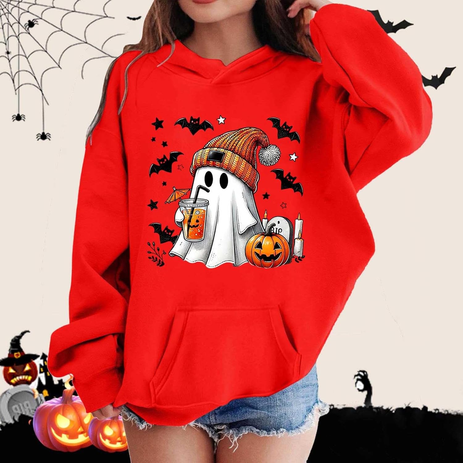 Felpa con cappuccio di Halloween per ragazze adolescenti, felpa con cappuccio con stampa fantasma carina e divertente, felpa con cappuccio oversize, streetwear caldo, per pullover Y2K, felpa con cappuccio, inverno, autunno
