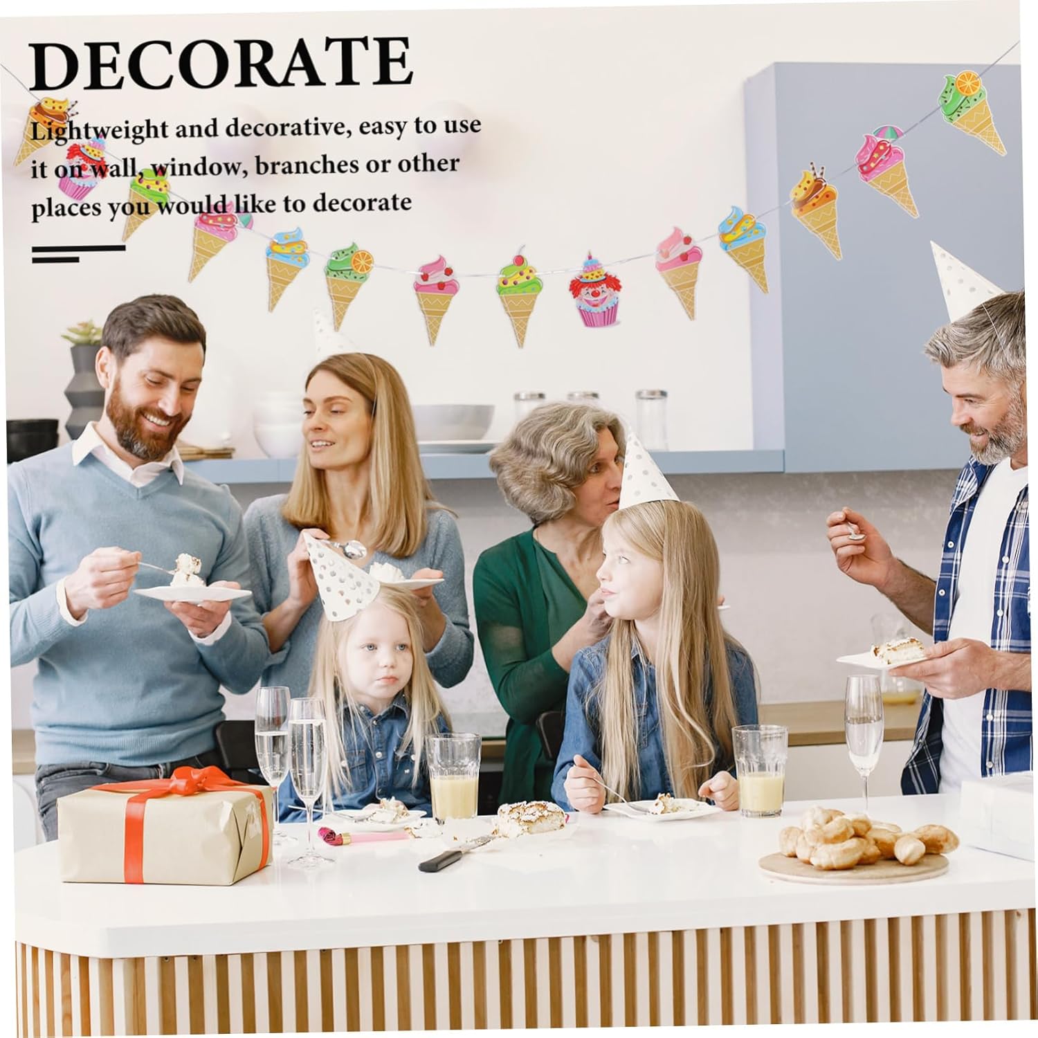 Decorazioni per lecca-lecca: sicure e non facili da danneggiare, puoi usarle con sicurezza. vivace e facile da decorare. Banner per feste a tema dessert: realizzato in materiale di alta qualità, decorazione con motivi, può aggiungere più colori alla festa di compleanno. Decorazione cupcake: crea un'atmosfera piacevole e tranquilla. Adatto per feste di dessert e attività celebrative. Ghirlanda per feste a ciambella: crea un'atmosfera calda e lascia un'impressione profonda sugli ospiti con un design raffinato. Ornamento per cupcake: durevole per molte volte, senza sfilacciamenti, senza cattivi odori.
