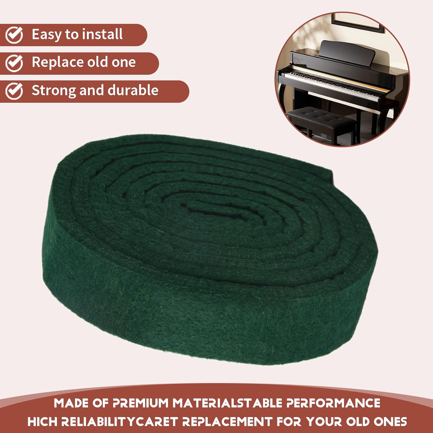 perfetto per l'uso su guide a molla tra le altre applicazioni commerciali leggere. Parti di riparazione per pianoforte a molla in feltro su rotaia di alta qualità. Ottimo per la riparazione di parti di ricambio per pianoforte.