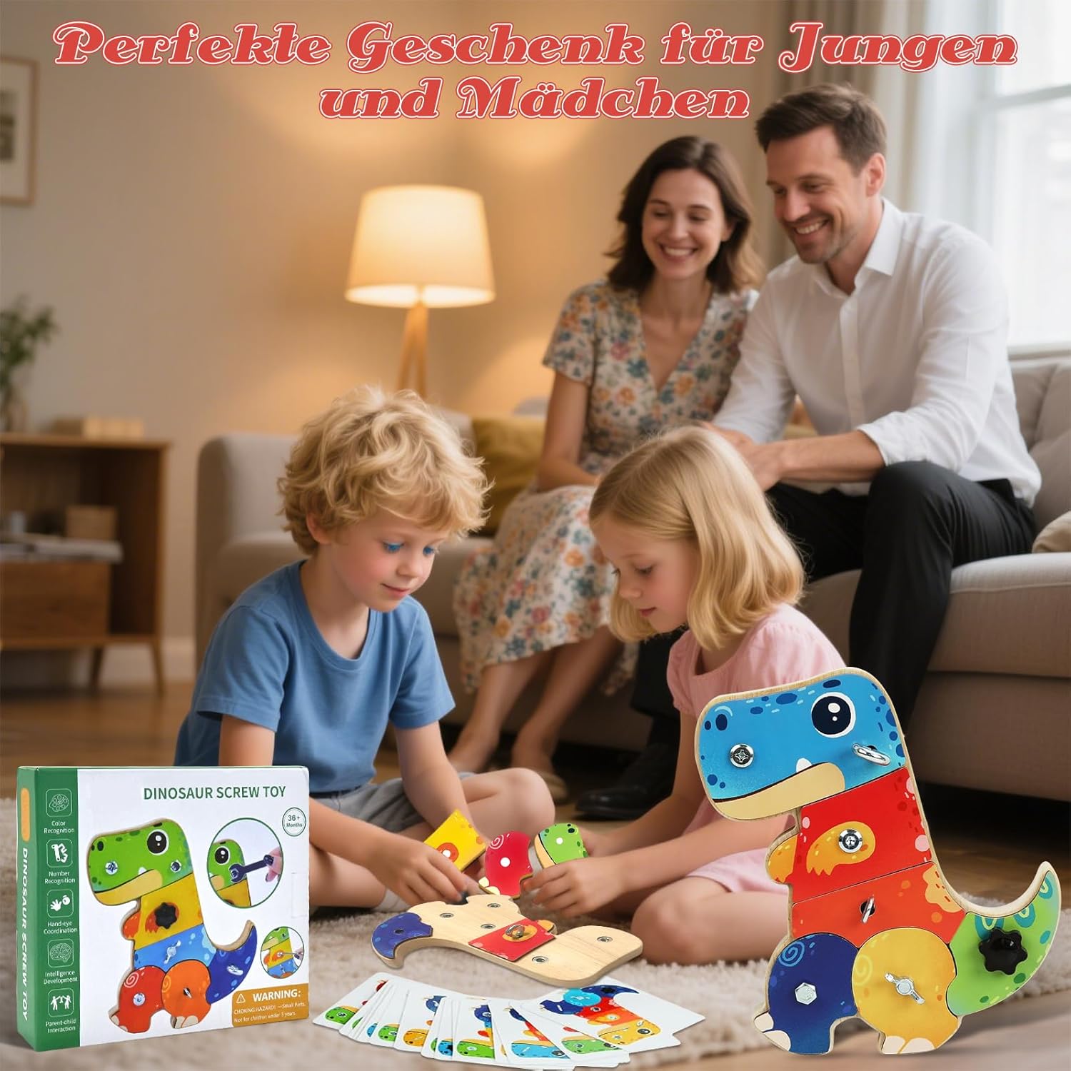 【Giocattolo educativo Montessori】Giocattolo in legno con viti a forma di dinosauro, lavagna Montessori con 7 diversi tipi di viti e 2 strumenti, con puzzle a blocchi colorati e carte. Questo giocattolo in legno allena il pensiero e le capacità pratiche dei bambini, li aiuta a riconoscere i diversi colori e promuove la loro creatività e immaginazione. 【Giocattolo educativo per bambini】Questo è un giocattolo Montessori per promuovere le capacità motorie dei bambini dai 3 anni in su. La lavagna delle attività per neonati insegna ai bambini le abilità pratiche nell'uso dei cacciaviti e migliora le loro capacità di riconoscimento. A differenza di altri prodotti, includiamo blocchi di legno colorati che possono essere utilizzati per assemblare dinosauri in diversi colori. Questo rende il gioco ancora più divertente! 【Legno di alta qualità】La lavagna delle viti Montessori è realizzata in legno naturale, ricavato da un unico pezzo e non incollato. Le viti sono realizzate in metallo di alta qualità, resistente e sicuro. I bordi dei blocchi di legno sono lisci e senza sbavature. I diversi colori sono brillanti e attirano l'attenzione dei bambini. I materiali di alta qualità garantiscono la sicurezza dei bambini. Il grazioso design a forma di dinosauro è molto apprezzato dai bambini. 【Promuove il rapporto genitore-figlio】Questa lavagna con le viti a forma di dinosauro è uno strumento eccellente per i genitori che vogliono insegnare ai propri figli le competenze di base della vita e interagire a stretto contatto con loro. Non solo allena la coordinazione occhio-mano e il riconoscimento dei colori, ma rafforza anche il legame emotivo tra genitori e figli. Allo stesso tempo, è anche un ottimo giocattolo da viaggio. 【Regalo perfetto per i ragazzi】La lavagna Montessori è disponibile in una colorata confezione regalo e, con il suo esclusivo design a forma di dinosauro, è apprezzata sia dai ragazzi che dalle ragazze. È il regalo perfetto per le riunioni di famiglia, Pasqua, la Festa dei Bambini, Halloween e Natale.