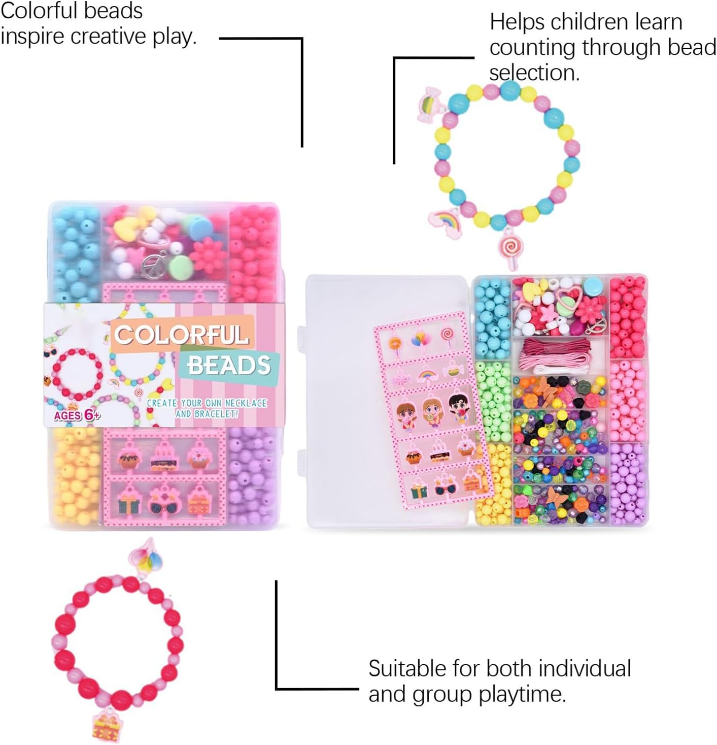 Adattamento ad Atmosfere Festive: Si integrano con facilità in ambienti festivi vivaci, permettendo di condividere momenti significativi e favorire connessioni emotive durante eventi speciali o riunioni, mostrando in ogni design la cura del lavoro artigianale handmade Perline per Immaginazione: Ispirano creatività con una varietà di colori, facilitando la realizzazione di gioielli a tema festivo per regali speciali e celebrativi, promuovendo l'espressione personale attraverso design unici Creazioni sicure e ordinate: Le perline per braccialetti includono una scatola di archiviazione che assicura praticità di organizzazione e protegge le perline da o perdite, permettendo uso domestico portatile mentre si gioielli in modo ordinato ed efficiente Pratica di Coordinazione Avvincente: Il kit favorisce vantaggi educativi come l'allenamento della coordinazione bilaterale e il riconoscimento di schemi, offrendo un modo pratico per rafforzare le abilità creando disegni colorati durante feste o momenti tranquilli a casa Attività Creative Coinvolgenti: I cordini in nylon morbido e le perle per bracciali della misura ideale incoraggiano manualità stabile e concentrazione, offrendo un modo coinvolgente per sviluppare pazienza e focus nei bambini durante la creazione di speciali a casa o in eventi scolastici
