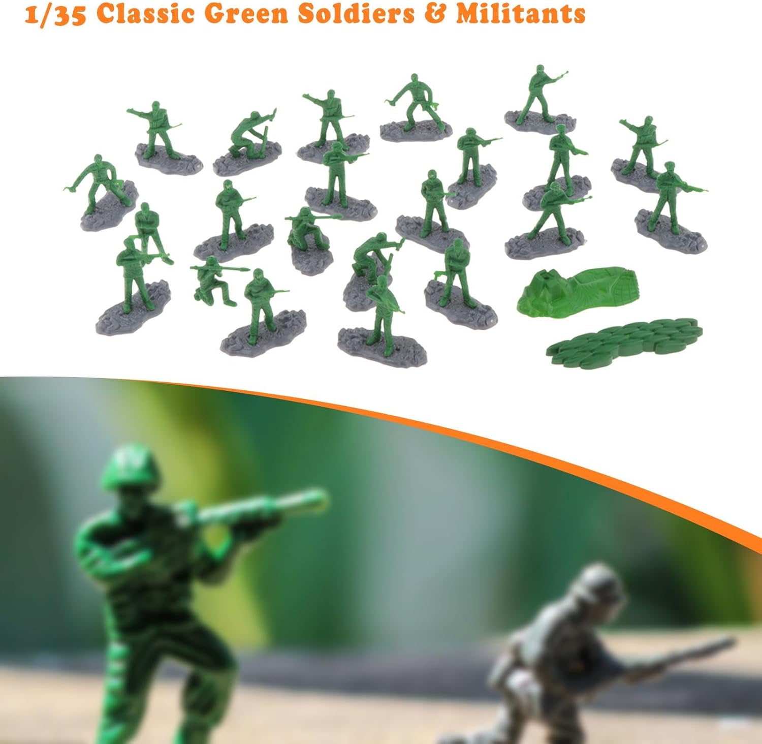 * 【Pacchetto incluso】: Il pacchetto include 18 mini modelli di soldati e 2 modelli di bunker, altezza del soldato 4 cm-5 cm / 1,57 pollici-1,97 pollici * 【Base stabile】: il set di figure di soldati 1/35 presenta basi stabili e ingrandite, indipendenti, facili da disporre, arricchendo le scene del tuo modello * 【Ampie applicazioni】: le statuette di persone in miniatura sono ideali per giocattoli da costruzione di scenari da tavolo di sabbia, modelli architettonici, scene in miniatura, decorazioni per micro paesaggi, ornamenti da scrivania, layout di diorama, ecc. * 【Ottimi regali】: i modelli di mini soldati in scala 1:35 sono graziosi giocattoli da gioco per uomini e ragazzi e sono belle aggiunte alla collezione di qualsiasi appassionato di modellismo * 【Materiale Premium】: Le minifigure 1:35 sono realizzate in materiale PP di alta qualità, hanno una lavorazione e dettagli raffinati, non si rompono facilmente e garantiscono un lungo periodo di utilizzo