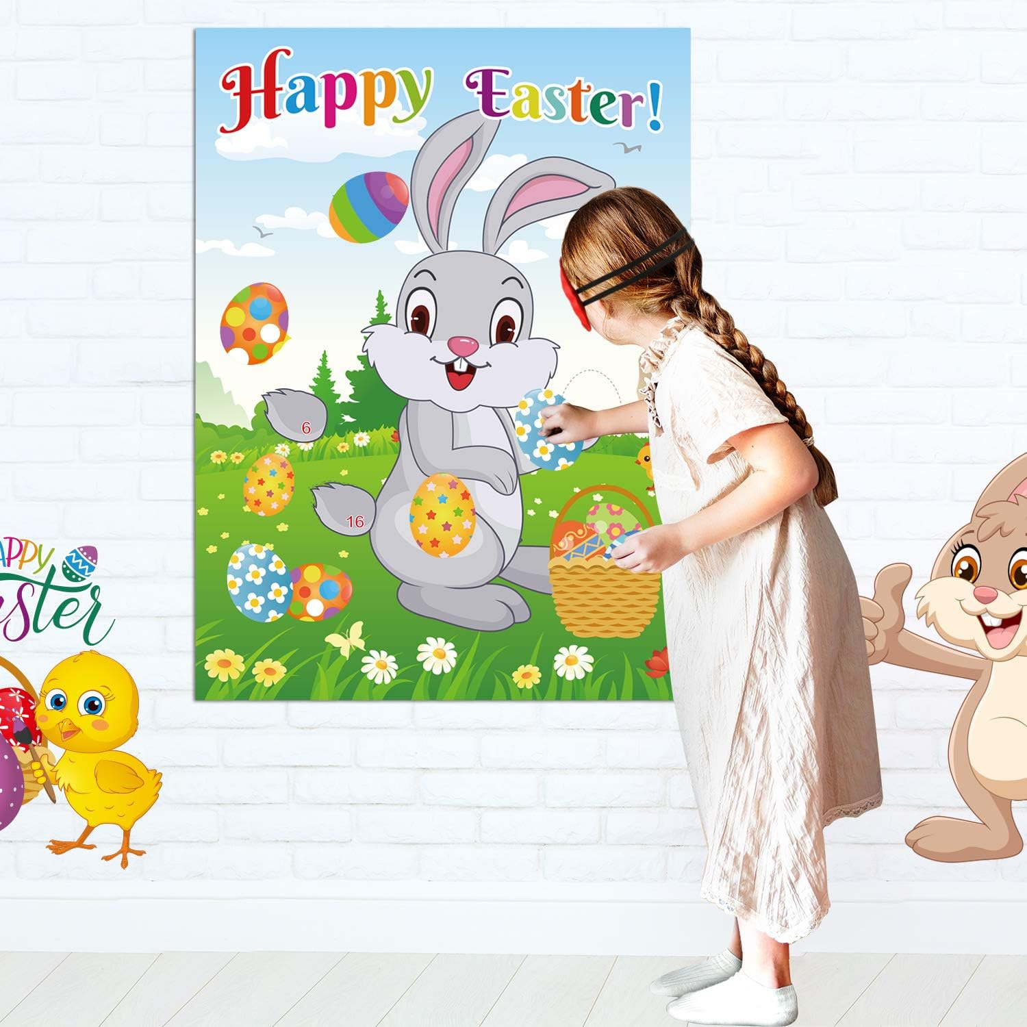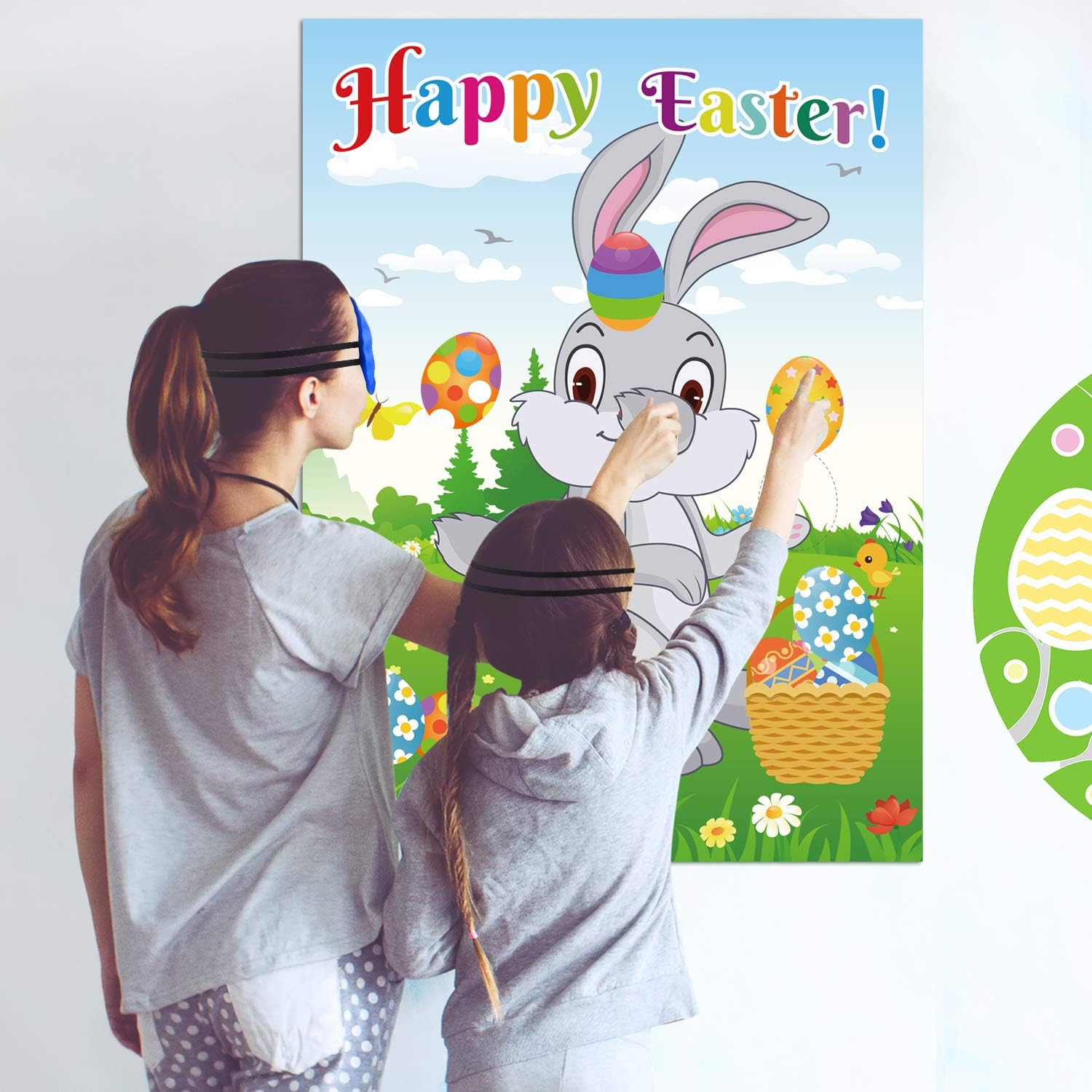Il pacchetto include: 1 * poster di coniglio; 24 * adesivi a coda di coniglio; 24 * adesivi per uova di Pasqua; 12 * punti di colla; 1 * benda. Giochi di società pasquali Pin la coda sul coniglietto, pin l'uovo sul coniglio Set di giochi di Pasqua, una buona scelta per la festa di Pasqua, attività di caccia alle uova di Pasqua, festa di compleanno, giochi per bambini, festa in classe, riunione di famiglia, festa, ecc. Aggiungi altro divertimento a i tuoi amici, bambini e famiglie 28 "* 21" grande poster lucido, può essere usato come decorazione domestica, decorazioni murali, decorazione della stanza, decorazione della festa di Pasqua Gioco di Pasqua riutilizzabile: gli adesivi di coda e gli adesivi Eater per uova sono facili da strappare e incollare, rimuovere e ripristinare. Porterà molto divertimento a famiglie e bambini Come si gioca: incolla il poster sul muro con punti di colla, quindi indossa la maschera per gli occhi, prendi un adesivo di coda e appuntalo sul poster, chi è più vicino chi vince