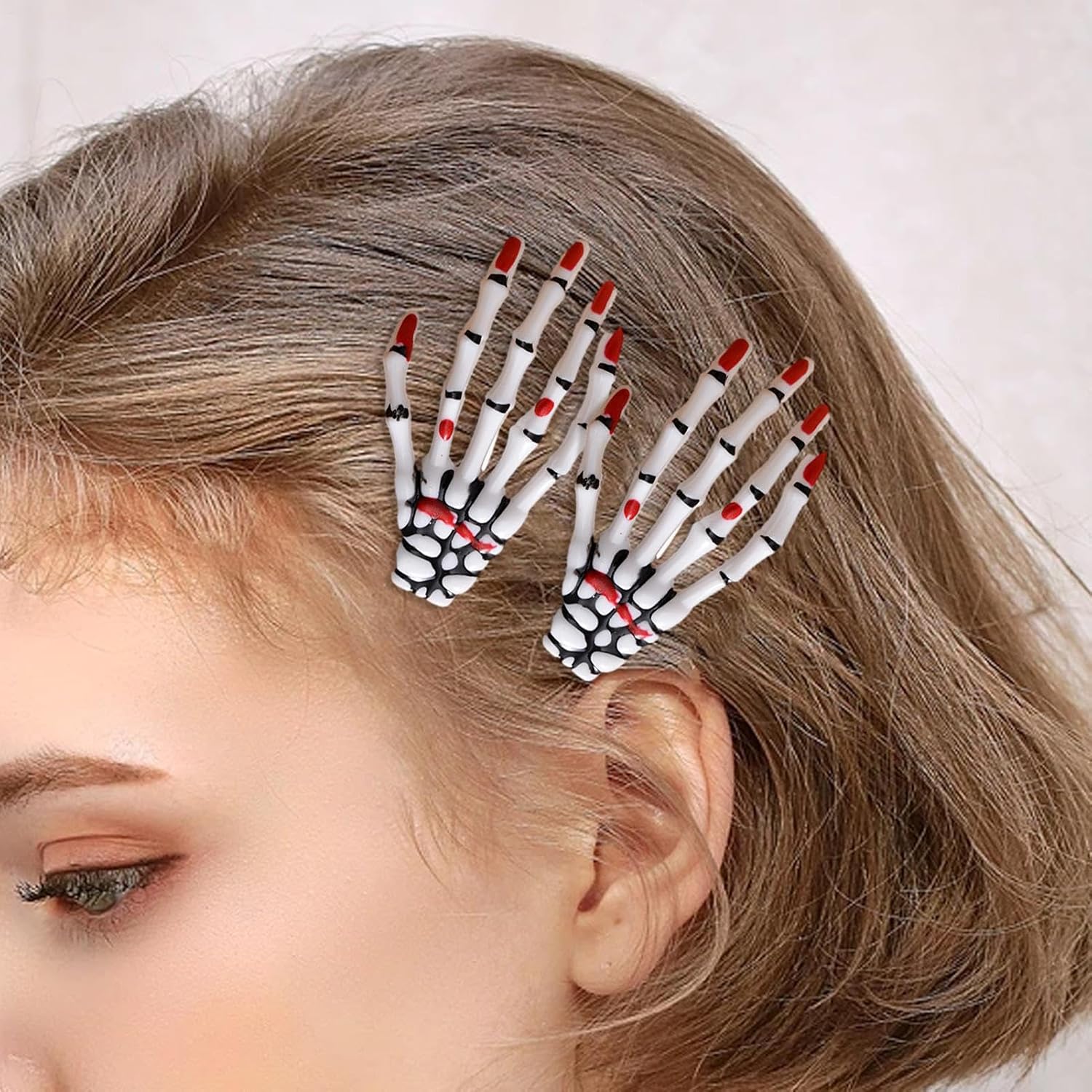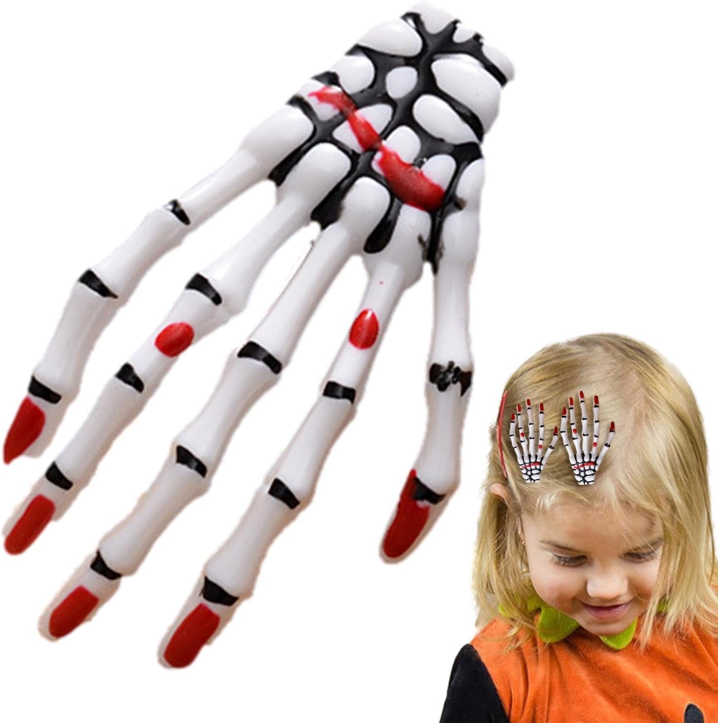 Materiali durevoli: questo fermaglio per capelli realizzato con materiali ABS e resina accuratamente selezionati è caratterizzato da un'eccellente durata e un comfort leggero. I suoi ingredienti sicuri garantiscono un uso a lungo termine Valorizza la tua età: con il suo design unico e carino, il fermaglio per capelli a mano scheletrica è adatto per capelli corti, lisci, ricci e lunghi ed è quindi versatile per qualsiasi look Ampiamente usato: abbellisci il tuo con il nostro fermaglio per capelli a forma di scheletro. Aggiungi un tocco spaventoso a feste, Halloween, compleanni, ecc. Perfetto per la decorazione di qualsiasi evento, quindi è ampiamente usato per tutte le occasioni Regalo adatto: migliora il tuo stile spaventoso con il fermaglio per capelli unico ed elegante a forma di scheletro, che è adatto per Halloween ed è un regalo di compleanno perfetto per le donne che amano un po' di stile di Halloween Facile da trasportare: crea un look spaventoso con questo fermaglio per capelli a mano scheletrica che è facile da indossare e pronto per l'uso sempre e ovunque se vuoi ravvivare i tuoi capelli