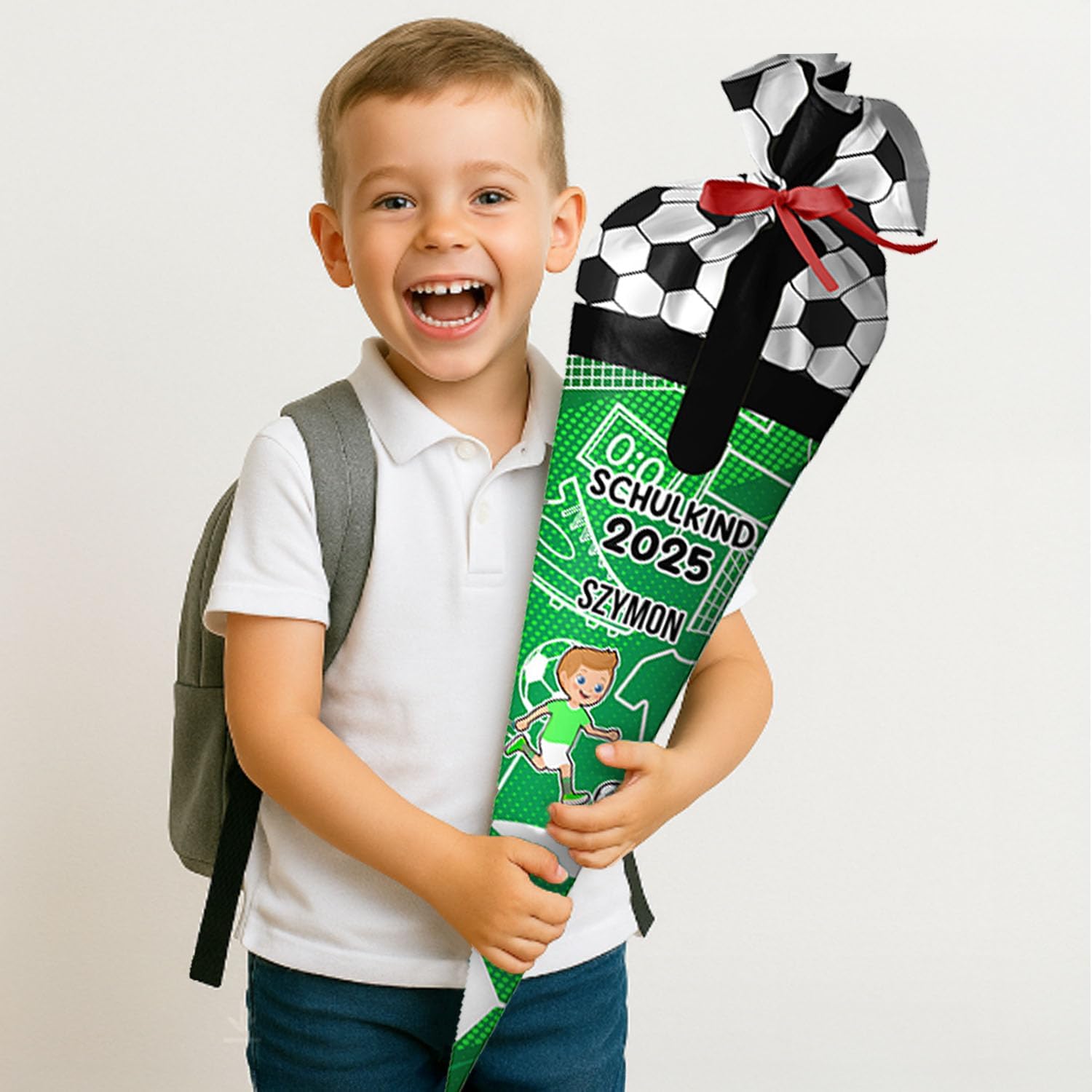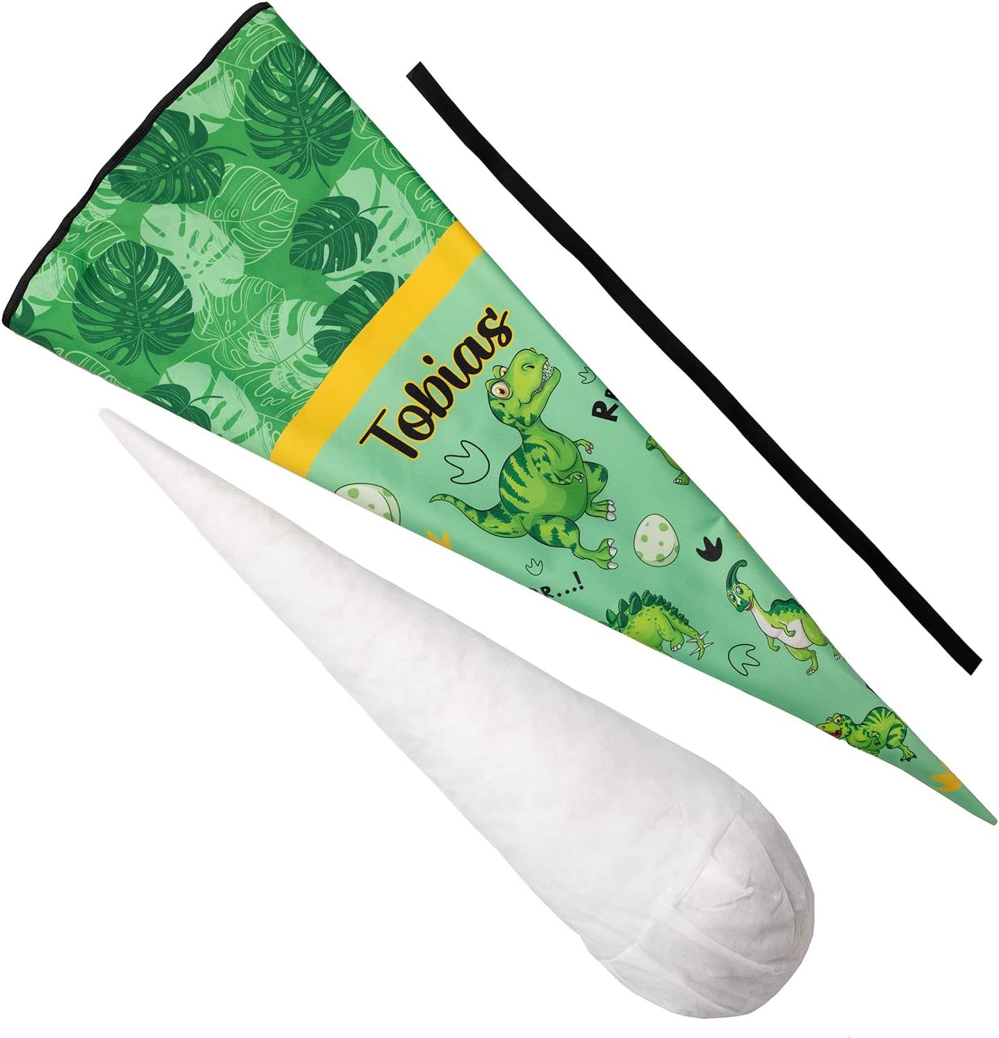 Il cono scolastico è realizzato in tessuto 100% poliestere. All'interno si trova un pezzo rotondo di cartone e un'imbottitura rimovibile in sfere di fibra cava di poliestere. Il tuo bambino potrà usare la borsa come cuscino più tardi! Rimetti semplicemente le palline di fibra cava, legala con un fiocco e il gioco è fatto. La borsa ha 70 cm da riempire (questa è anche quella grande per il cartoncino) + più tessuto nella parte superiore che puoi legare con un fiocco. Il nastro è incluso nel kit. Il colore dell'arco verrà inviato in modo casuale. La bustina di zucchero è personalizzata con il nome del bambino. Basta fare clic su "Personalizza ora", inserisci il tuo nome e aggiungi al carrello! Nel nostro negozio troverai gli accessori scolastici adatti affinché tuo figlio possa iniziare la scuola, ad es. cartelle, borse sportive e molto altro ancora