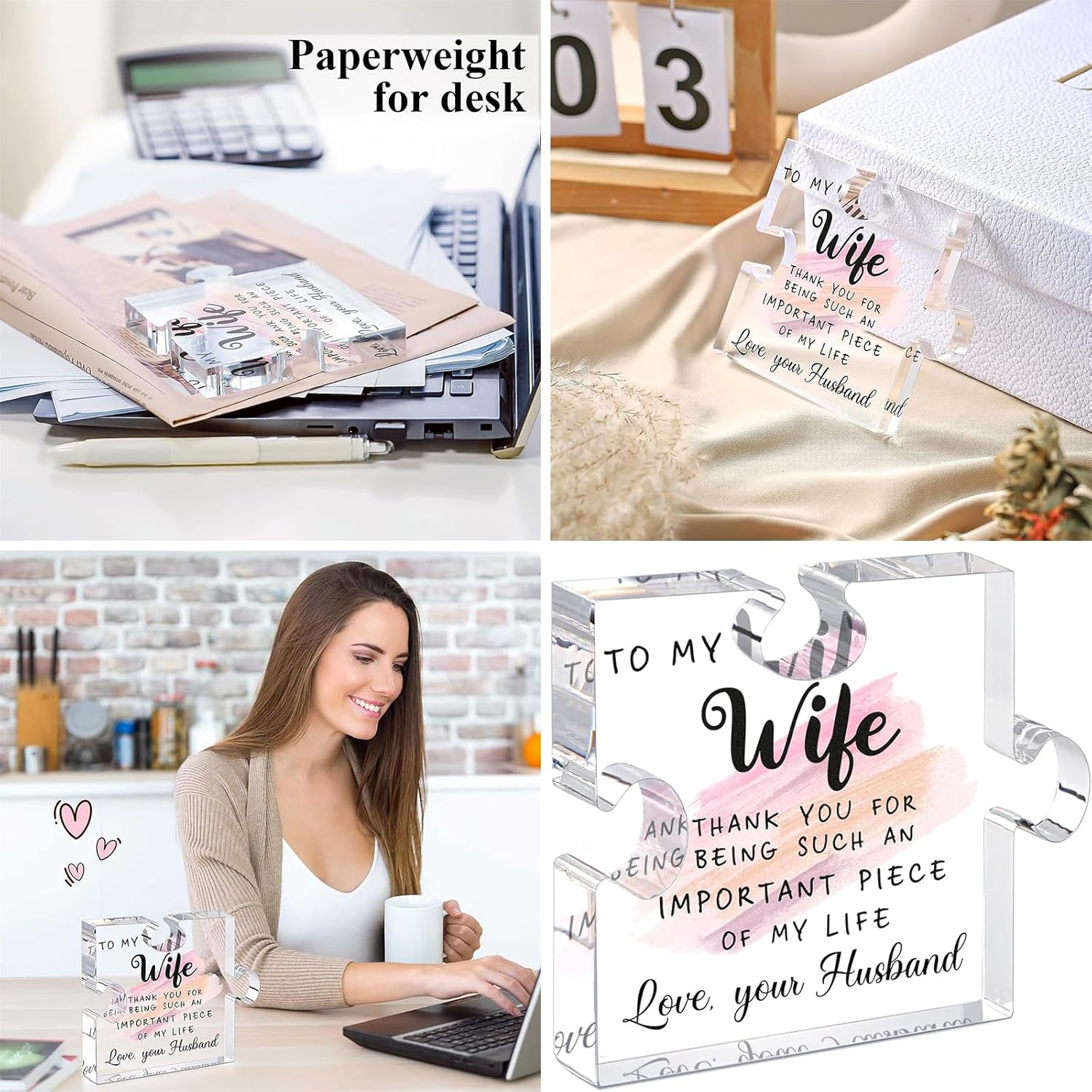 Per la festa della mamma, Natale, compleanni o anniversari, questo puzzle decorativo è un regalo unico per le donne Ideale per chiunque esprimere la propria zia per la zia, in particolare generazione e regalo professionale significativo Realizzato in acrilico trasparente ad alta resistenza, questo pezzo vivace e intricato di durata, display di lunga durata e facile da pulire, il che rende un complemento perfetto per qualsiasi decorazione Perfetto per migliorare il soggiorno, l'ufficio o l'area di studio, questo pezzo aggiunge un tocco di calore e fascino a qualsiasi stanza Questo colorato pezzo acrilico puzzle modello presenta un design unico e caldo regalo, che simboleggia calore e apprezzamento