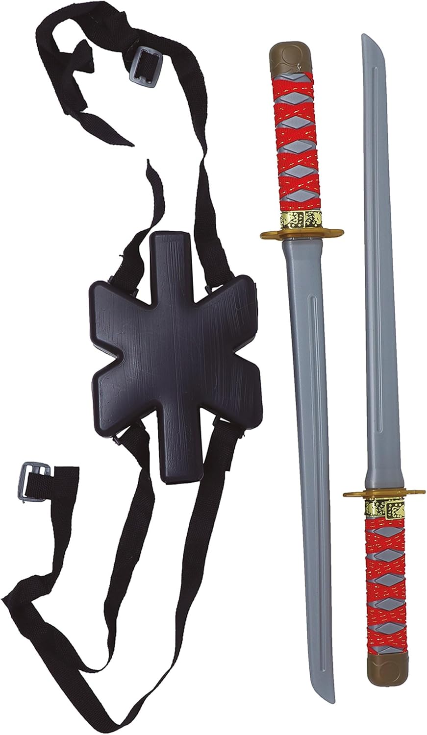 DIVENTA UN VERO SAMURAI - Include 2 spade da samurai. Abbigliamento, mantello rosso e accessori aggiuntivi non sono inclusi. Ideale per costumi ninja o guerrieri. DIMENSIONI - Dimensioni del prodotto 53 cm. MATERIALI - Realizzato in PVC. Disponibile in grigio e rosso. ACCESSORI COSTUME PER NINJA - Set di 2 spade da samurai per la schiena. Perfetto per feste a tema ninja. COSTUMI E ACCESSORI PER TUTTE LE OCCASIONI - A Fiestas Guirca troverai spade da samurai e tanti altri accessori. Visita il nostro negozio Amazon per scoprire altri prodotti.
