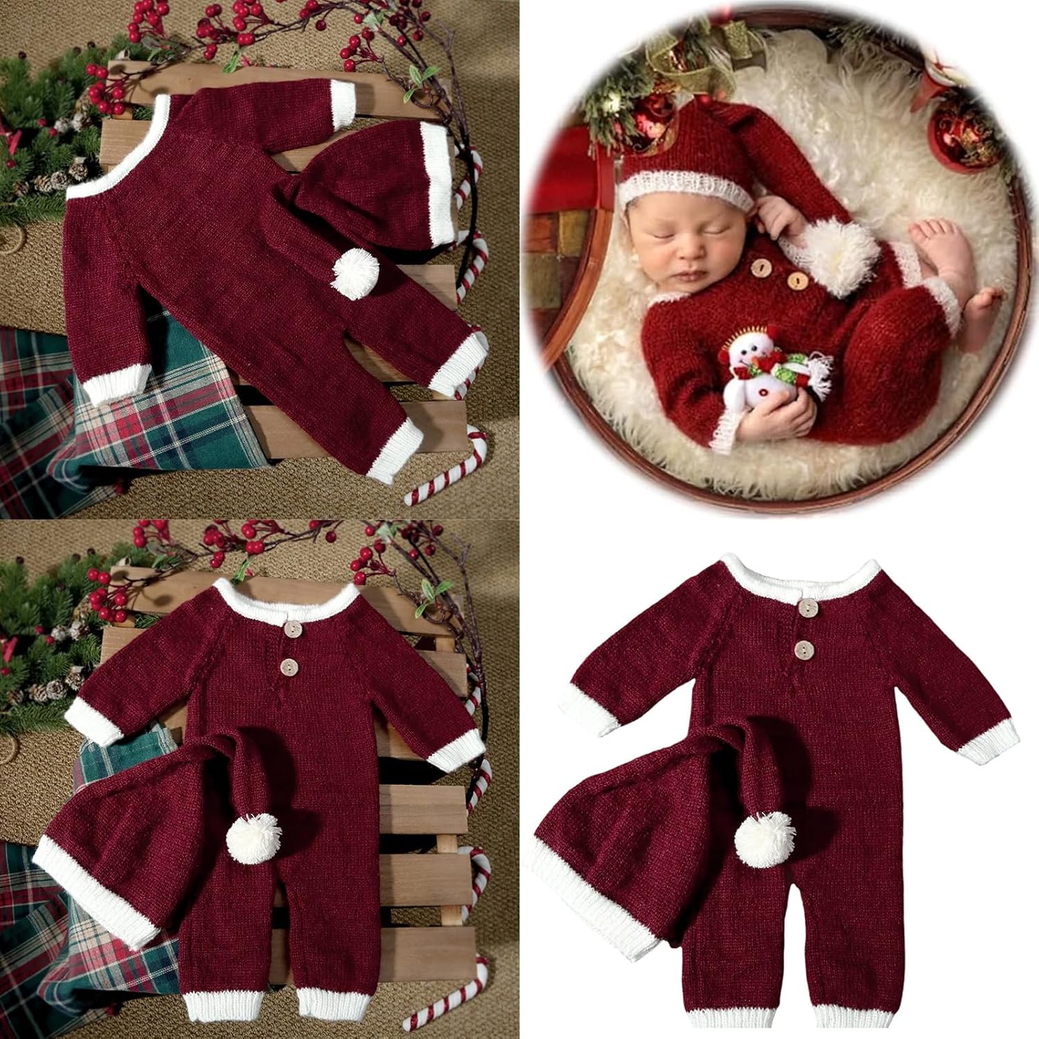 Cattura le magie del tuo bambino Natale con nostro set outfit Natale per la fotografia appena nata, ottimo per la creazione ricordi vacanze indimenticabili Registrando momento questa stagione delle vacanze, nostro set outfit natalizi per fotografie non è ottimo per la memoria, anche un regalo delizioso per i nuovi genitori Adatto alla fotografia a casa, questo outfit natalizio trasforma tuo bambino in Babbo Natale più carino, rendendo ogni istantanea aggiunta ai tuoi album famiglia Ottimo per genitore dei bambini età compresa tra 0 e 1 poliestere morbido e confortevole, questo set costumi fotografici ha caratterizzato look e accessori a tema natalizio delicati sulla tua pelle delicata neonata