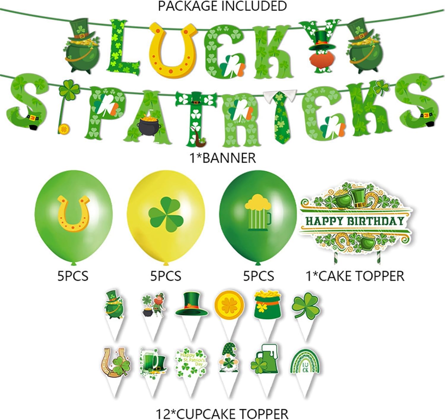 Trasforma la tua celebrazione con il nostro set di decorazioni per feste irlandesi, progettato per creare senza sforzo un'atmosfera festiva. Realizzate con materiali di carta, queste decorazioni sono sicure e rimovibili. per gli appassionati di cultura irlandese, organizzatori di riunioni di famiglia e organizzatori di feste alla ricerca di un tocco unico. Adatto per feste a tema, feste di compleanno e altri eventi in stile irlandese, garantendo un memorabili. Migliora la decorazione della tua festa con questo set che combina tradizione e creatività, rendendolo un elemento essenziale per qualsiasi occasione festival.