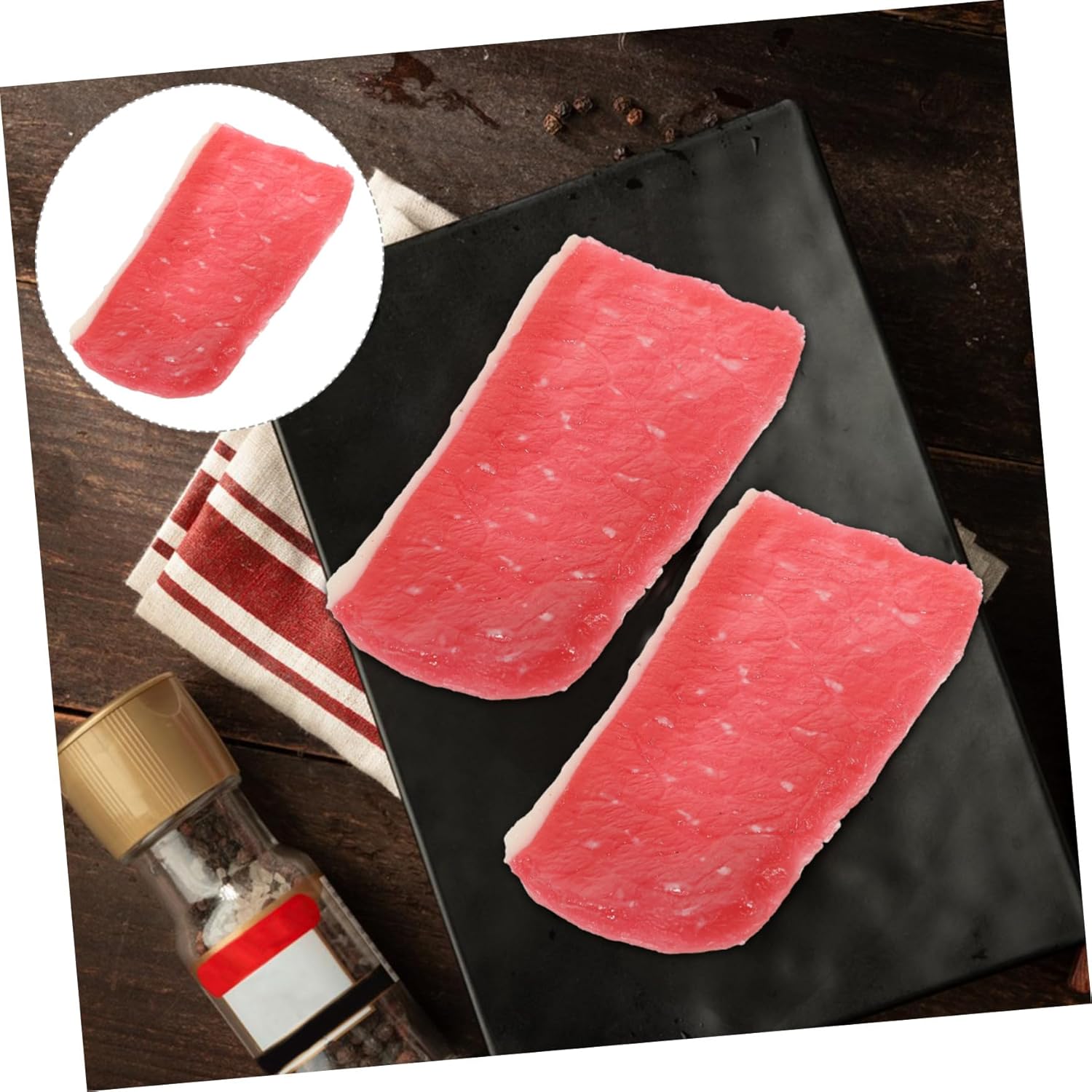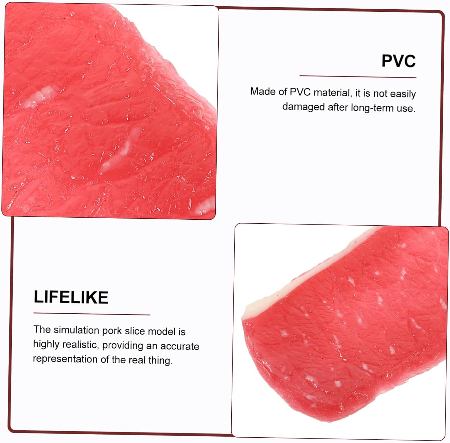 Giocattolo da cucina: aspetto realistico, forma realistica, aspetto artificiale come veri, aspetto attraente e realistico, cibo artificiale Decorazione da cucina con cibo : maiale artificiale è meraviglioso per decorare , decorare bar, esporre al ristorante, decorare buffet, cibo realistico Fette carne finte: fette maiale artificiali possono essere dei meravigliosi regali natale, regali per feste, regali compleanno, per persone amano decorare la propria casa, cibo artificiale per esporre la carne Oggetti per esporre la carne: maiale simulato ha una forma realistica, un bel colore, un aspetto delicato e raffinato, un cibo decorativo Carne da esposizione: design distingue da altri prodotti simili, rendendolo una scelta eccezionale per coloro cercano qualcosa speciale, un cibo realistico